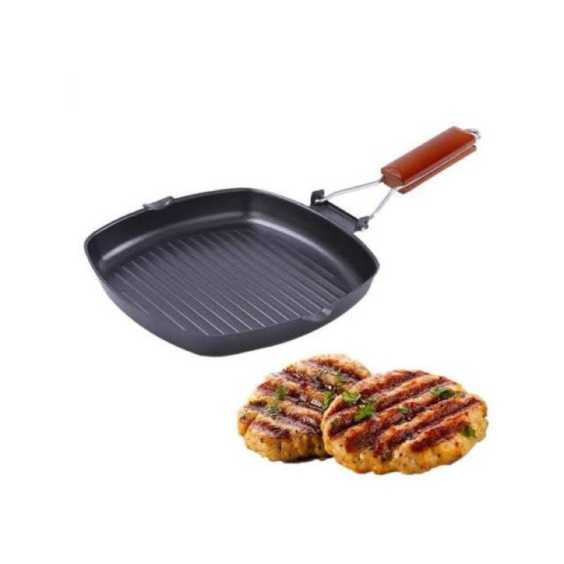 { JAS STORE } PANCI lipat Grill Pan 20 Cm Teflon Wajan BBQ Bakaran Sate Serbaguna Grill Pan persegi Panggangan Lipat 20cm Panci Panggang NEW
