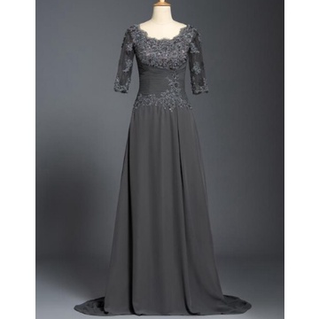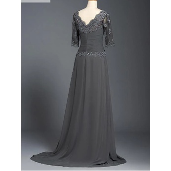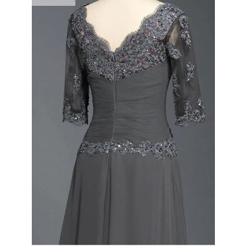 ‎Grey Chiffon Lace Manik-manik Setengah Lengan Lantai Panjang Pernikahan Ibu Pengantin Gaun Custom Made‎