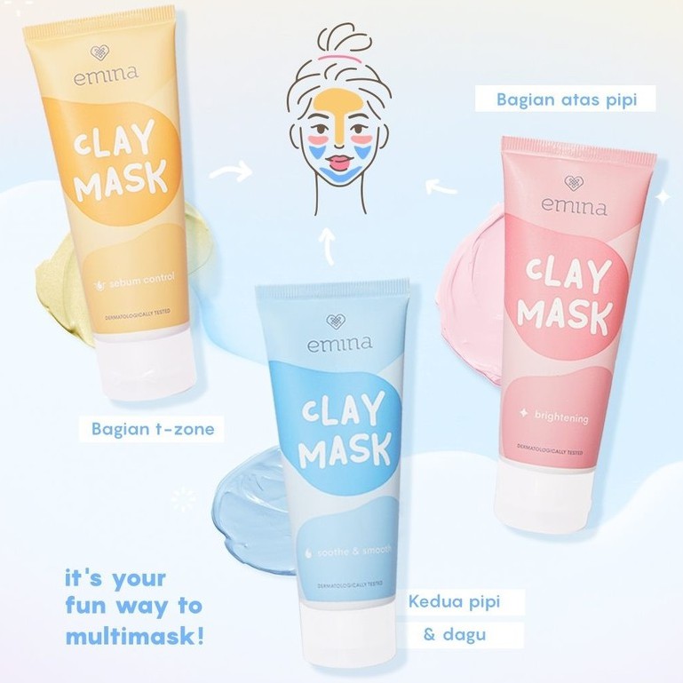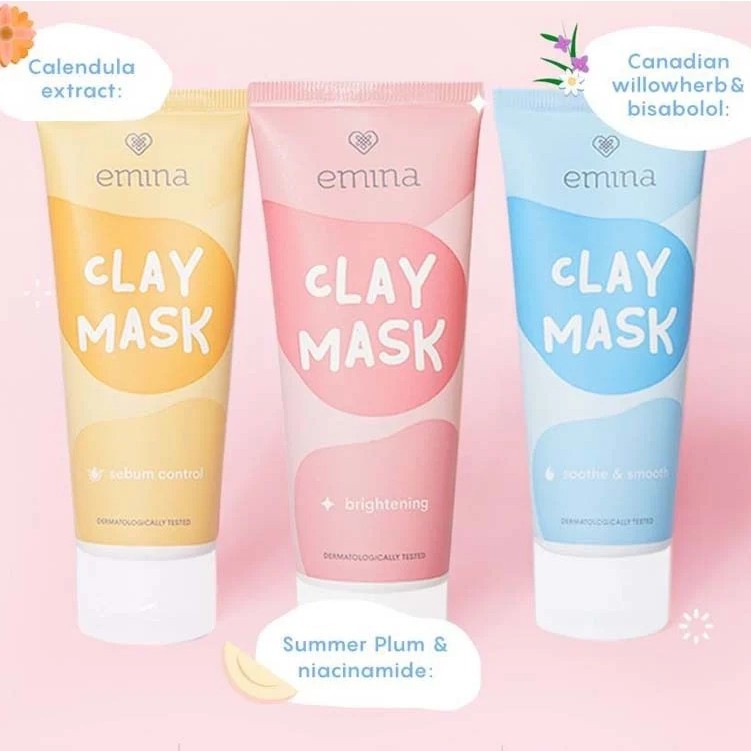 ☘️ CHAROZA ☘️ EMINA Clay Mask Brightening / Soothe&Smooth / Sebum Control