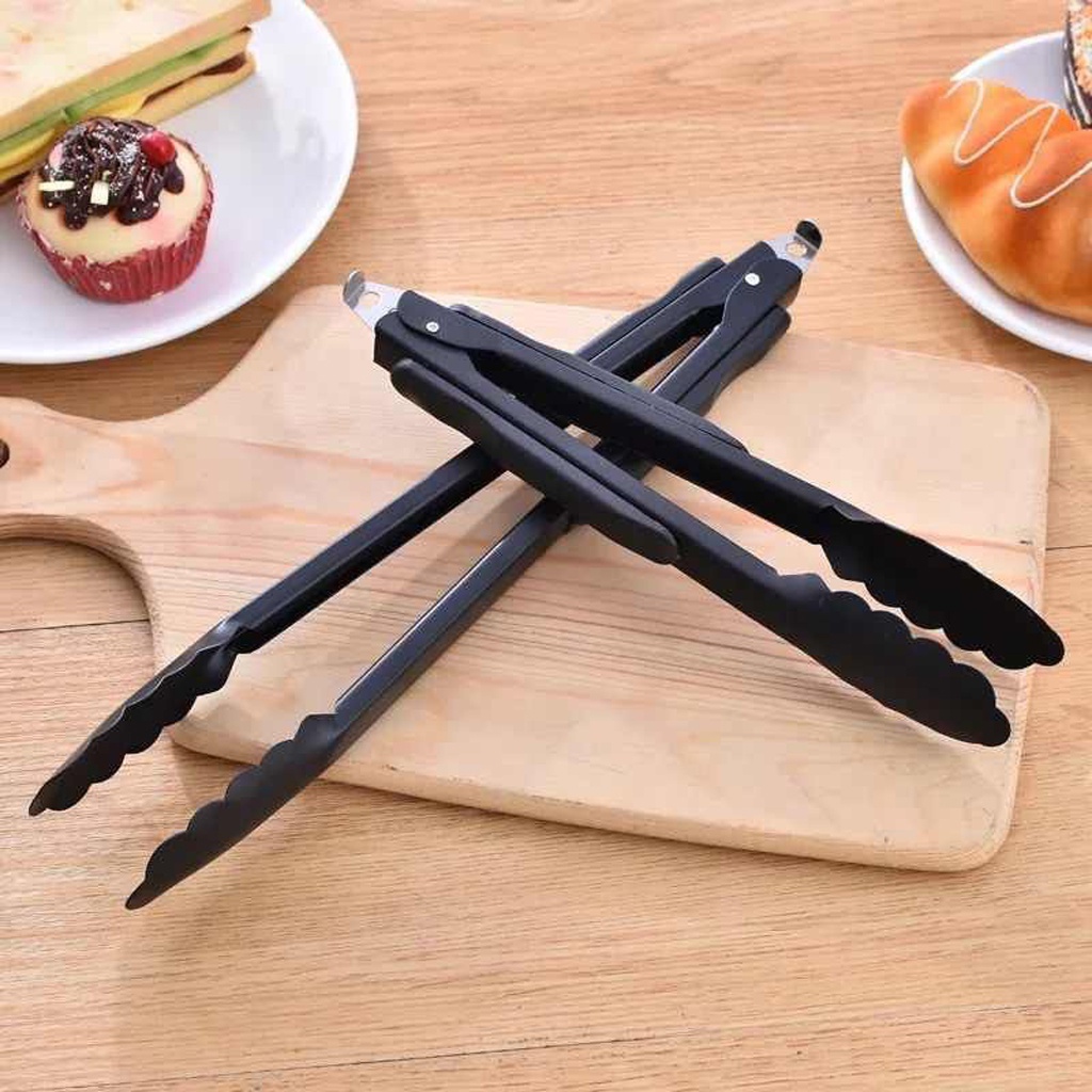 YUKSHOPING Capitan Makanan Jepitan Makanan Kue Gorengan Warna Hitam Kitchen Tong Stainless Steel Murah R600 R652
