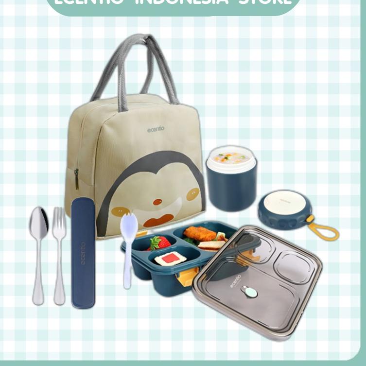 ❈➛ ecentio lunch box set 850ml/400ml Mangkuk sup set/kotak makan set/lunch bag set /free Sendok&sumpit&garpu ★★★ TBQ