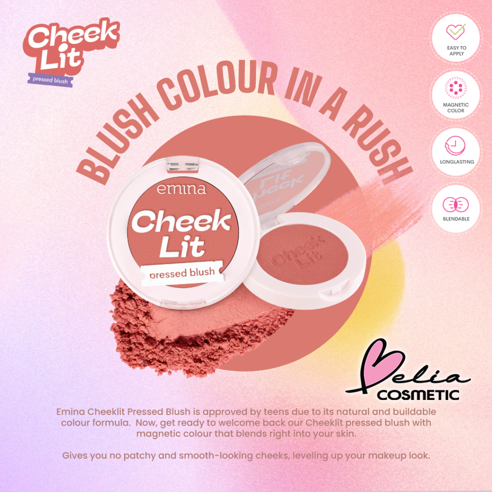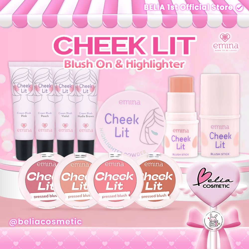 [ BELIA ] EMINA Cheek Lit Pressed Blush On, Cream, Blush Stick, Highlighter Powder BPOM Cheeklit