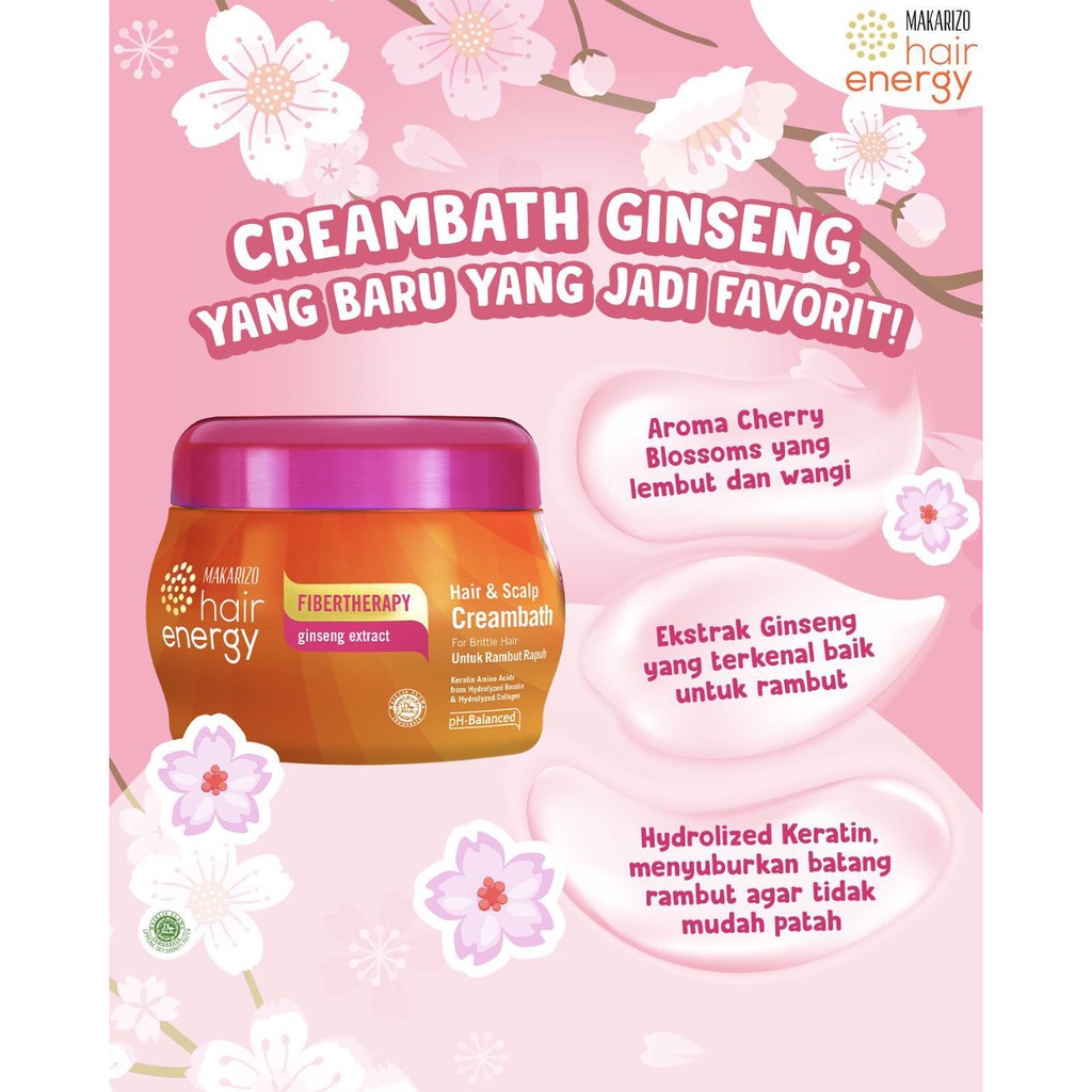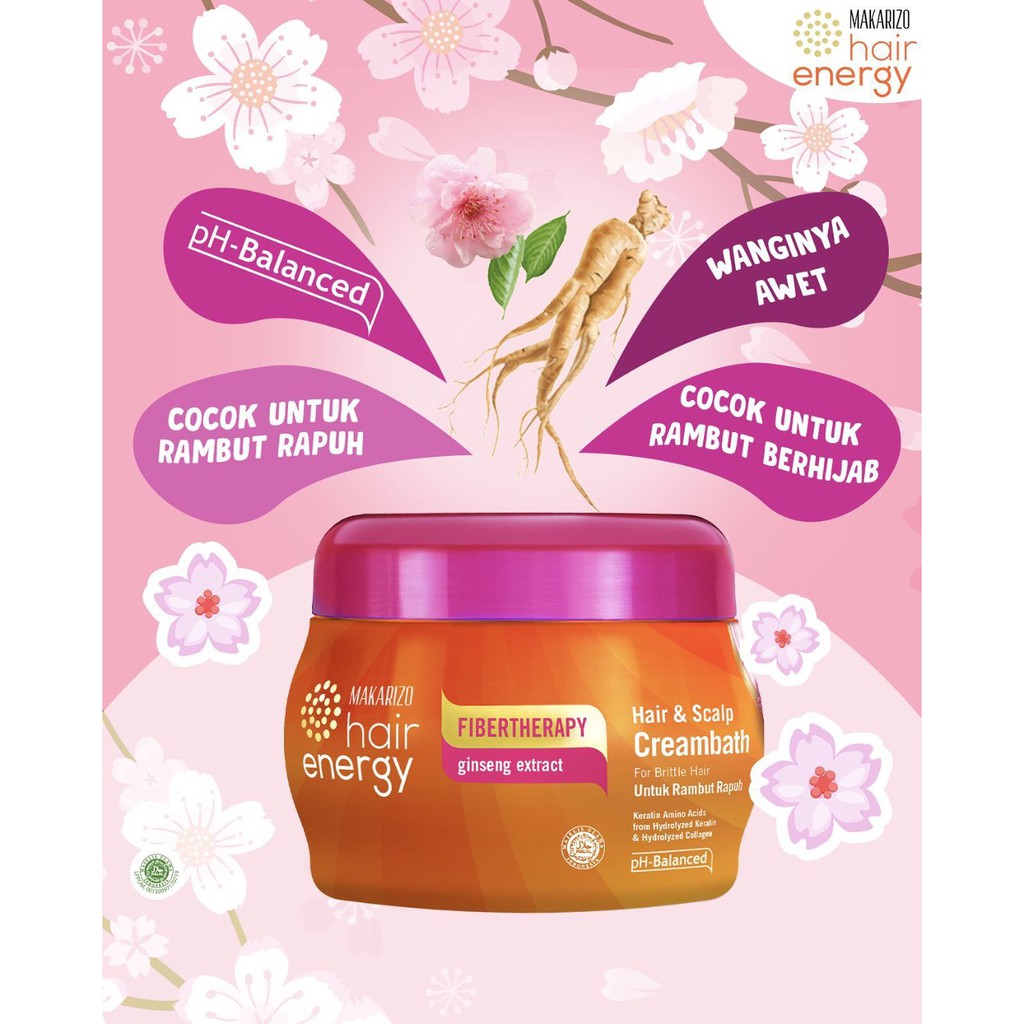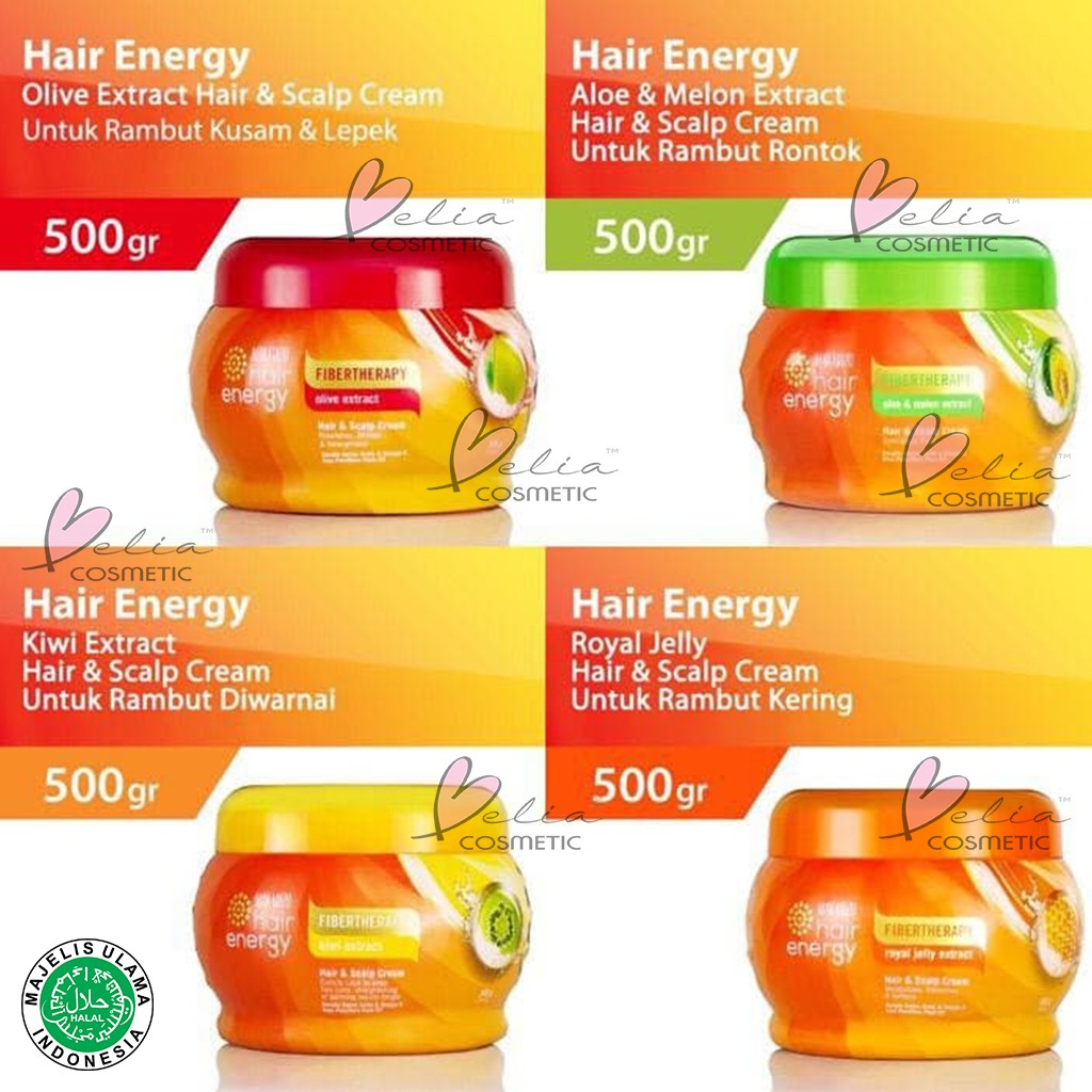 ❤ BELIA ❤ MAKARIZO Hair Energy Fibertherapy Creambath 500gr (✔️BPOM) Aloe Kiwi Royal Jelly Ginseng