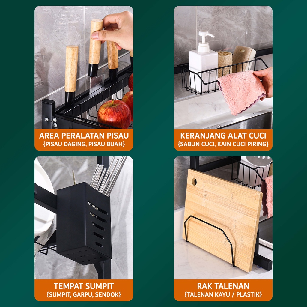 Nyaman Rak Piring Wastafel Stainless steel Rak dapur Kokoh Kuat Rak Cuci Piring Wastafel Dengan