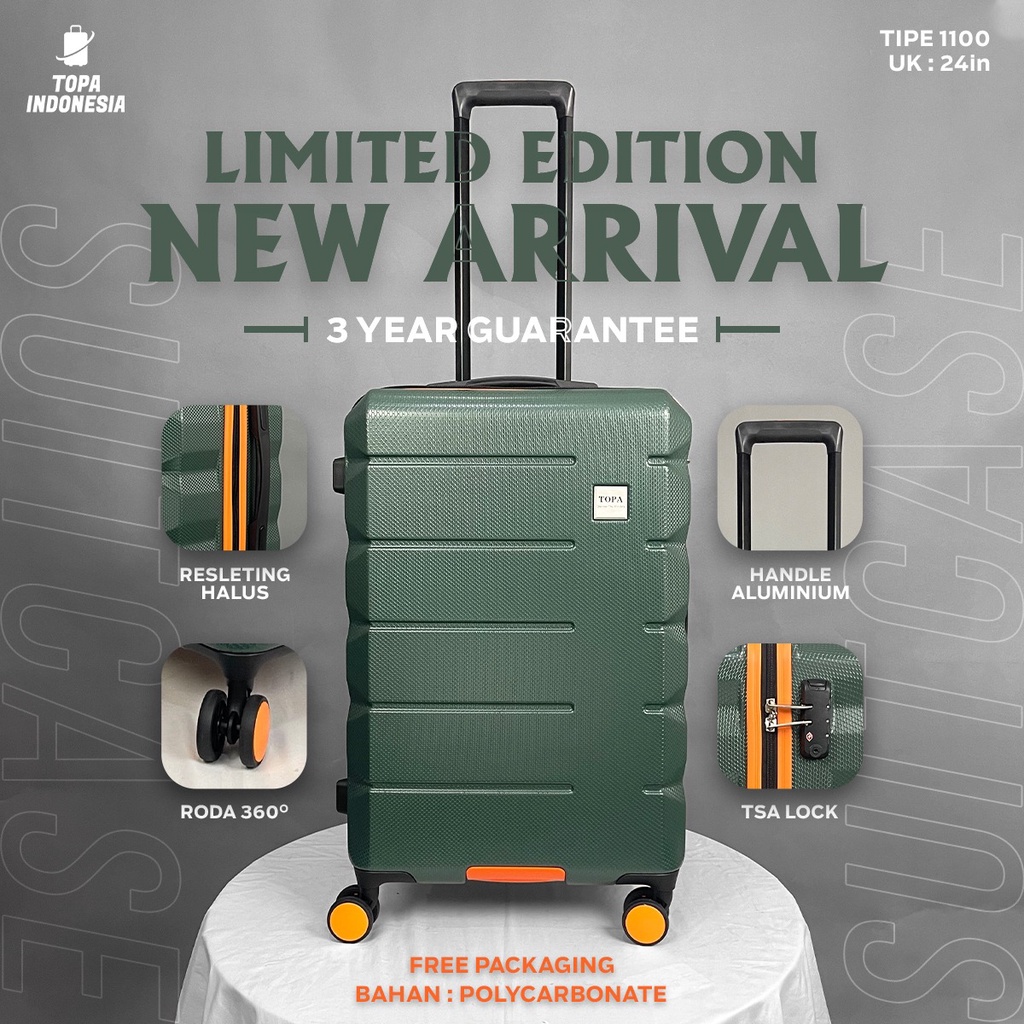 Koper Kabin & Bagasi 20 24 28 Inch – Bahan PC Topa, Ringan, Anti Pecah, Roda 360° (1100) AOMI