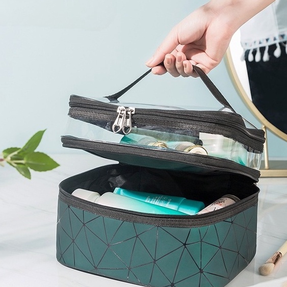 Pouch Make Up Transparan 2 Susun – Travel Organizer Kosmetik Waterproof (91033 / 91068 / 91069)
