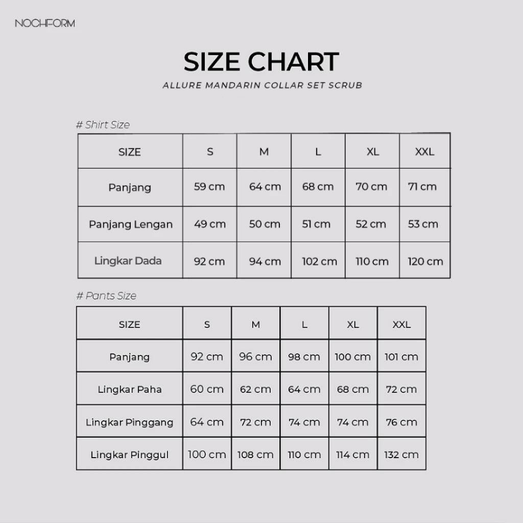 𝐍𝐎𝐂𝐇 𝐅𝐎𝐑𝐌 Allure Mandarin Collar Set Scrub Lengan Panjang / Doctor’s Scrub/ Set Baju Celana Jaga OKA / Baju OK Dokter