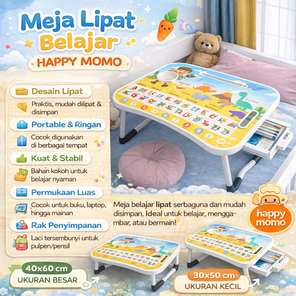 Happy Momo Meja Belajar Lipat Anak Karakter – Meja Sekolah Portable Ringan