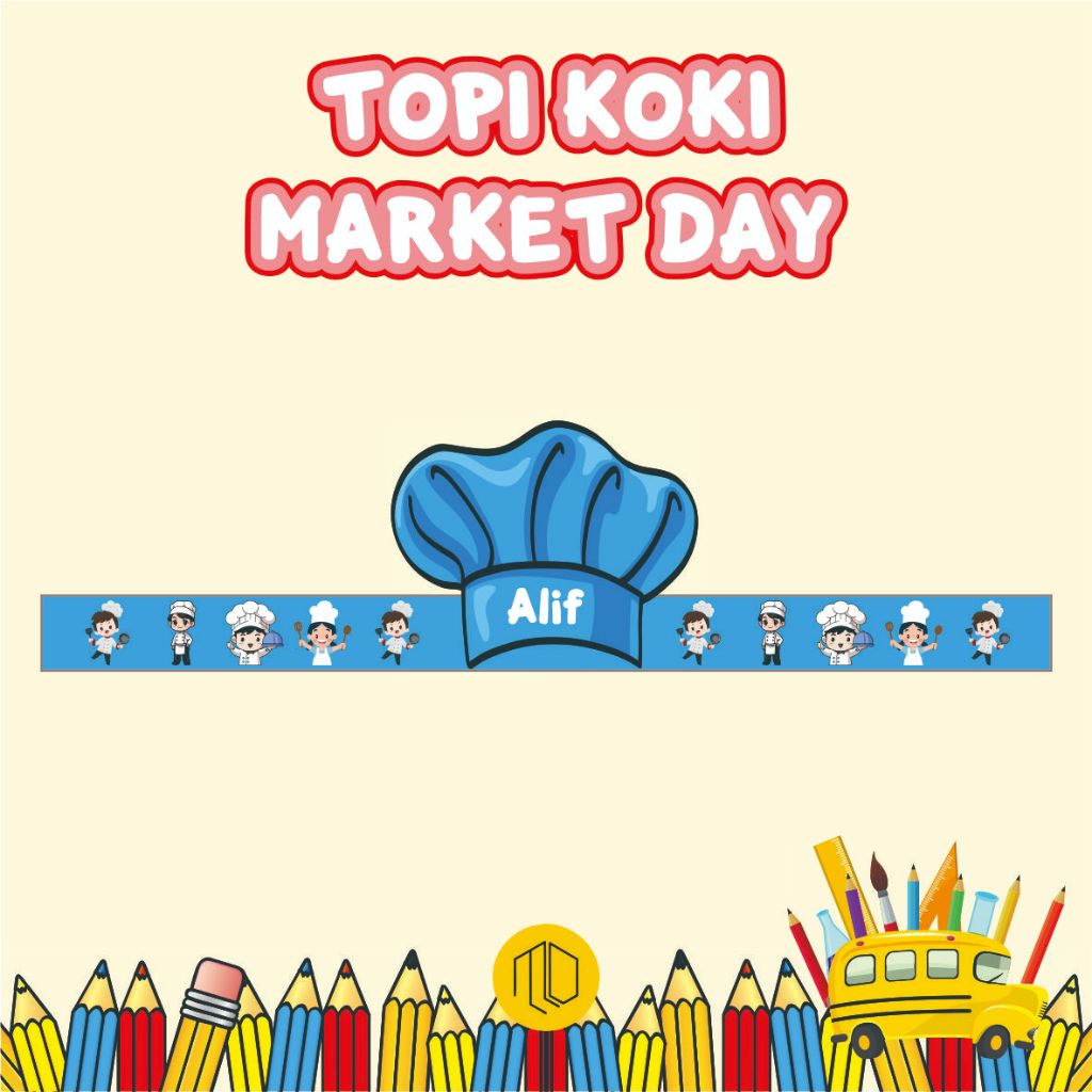 ( 1 Hari Jadi ) Topi Koki Market Day Bisa Custom Nama - Topi Market Day Custom - Custom Topi Koki Bisa Request Nama Dan Tema - Aksesoris Topi Market Day Sekolah Dan Tk