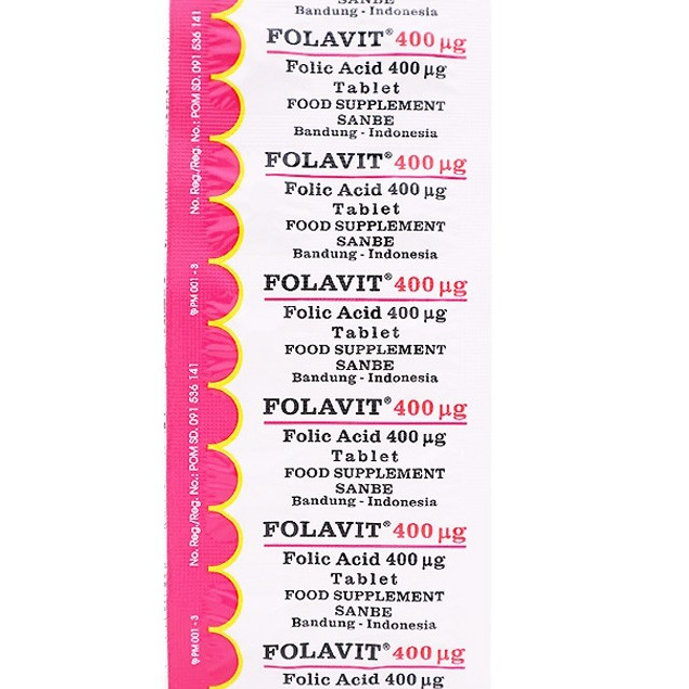 Folavit 400 mcg 1 Strip / Asam Folat / Folic Acid / Suplemen kehamilan dan menyusui / Anemia