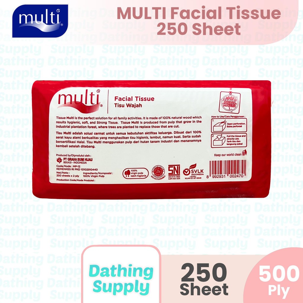( 6 PACK ) Tissue Multi Facial Tisu 250 Sheet - 2 PLY / Tisue Wajah Serbaguna Halus Lembut 250s Lembar