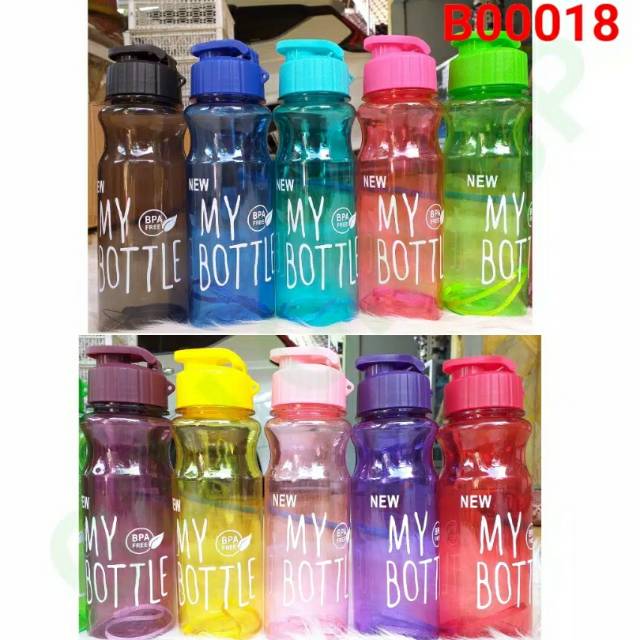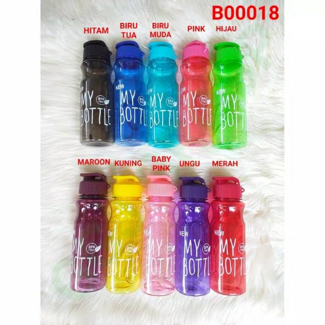 ( B042 ) MY BOTTLE TUTUP KLIK FULL TRANSPARAN WARNA / BOTOL MINUM TUTUP KLIK PUTIH/ KWALITAS TERBAIK / TAHAN PECAH