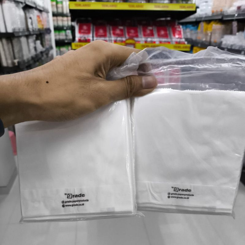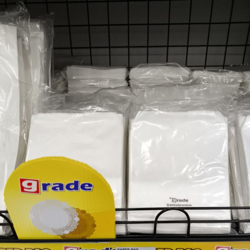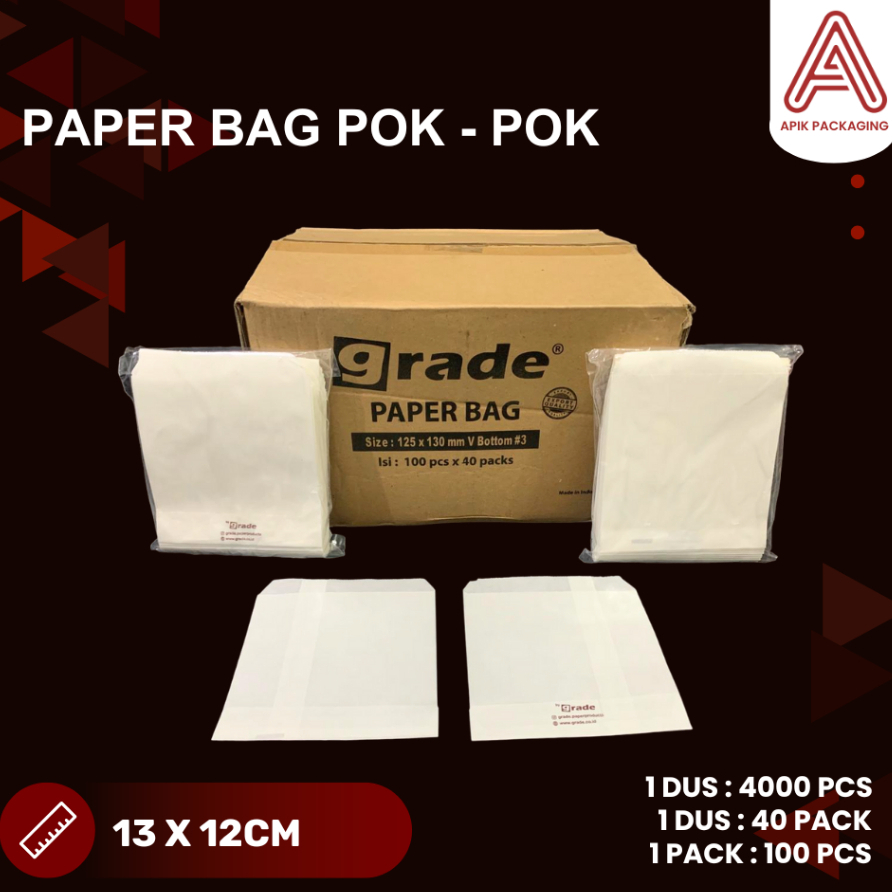 ( BESAR GRADE ) PAPER BAG POLOS PUTIH POK POK MEREK GRADE / KANTONG SNACK / KANTONG MAKANAN