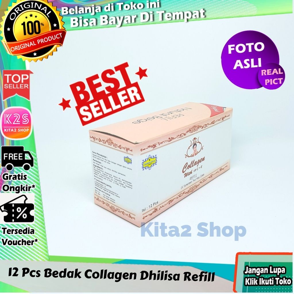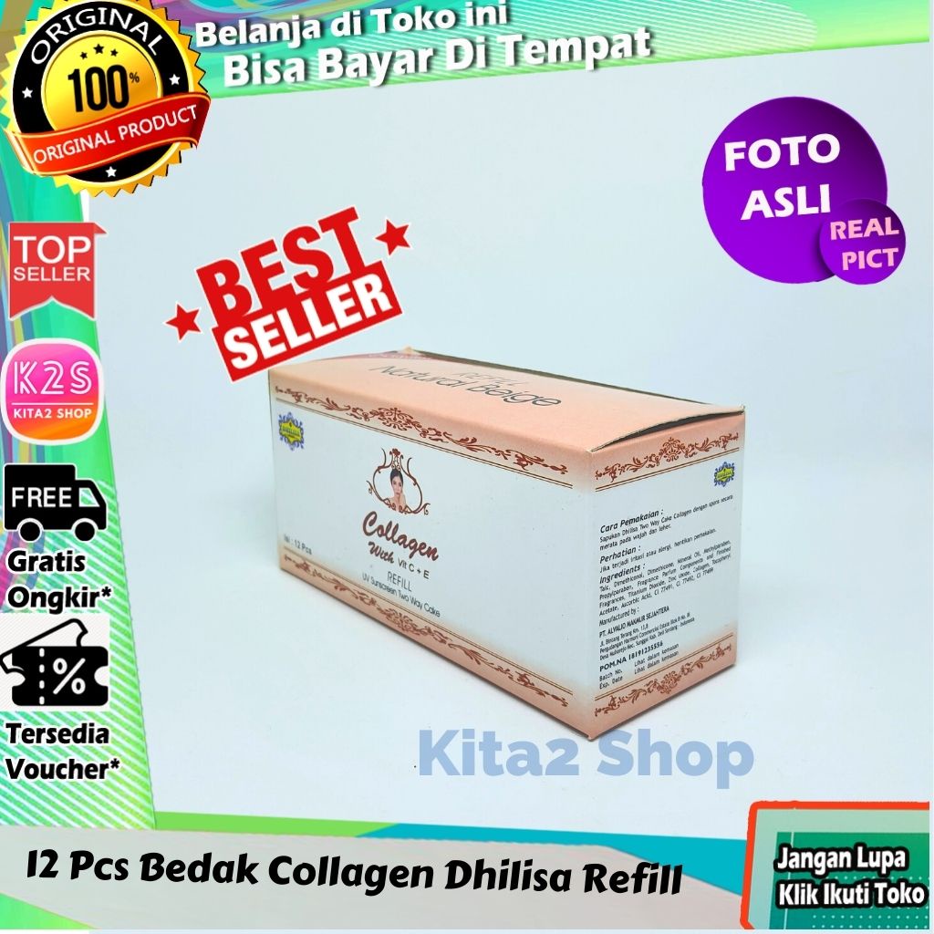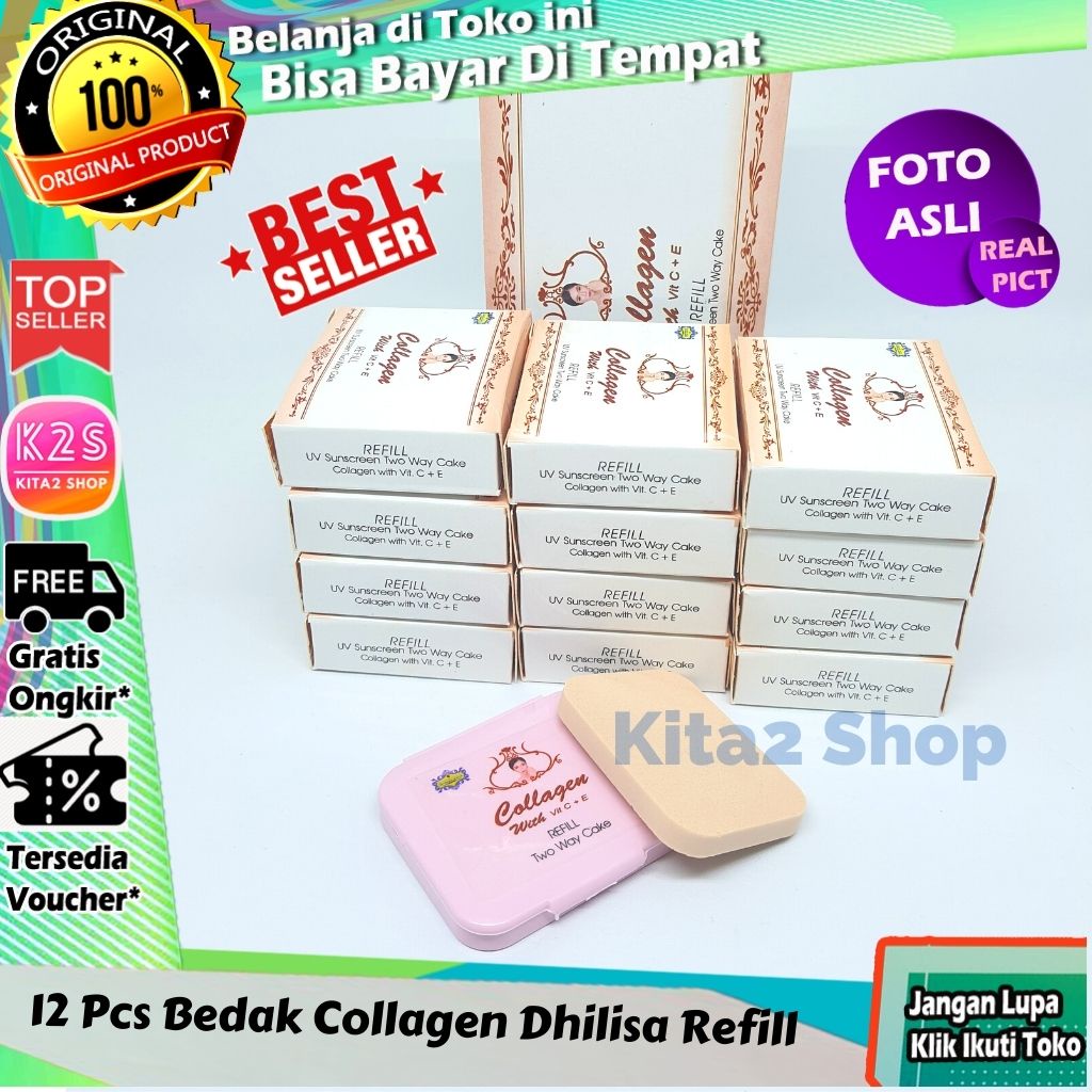 ( BISA COD ) 12 PCS Bedak Collagen Dhilisa Refill (1 Lusin ) + Spons Bisa COD Bayar Di Tempat K2S