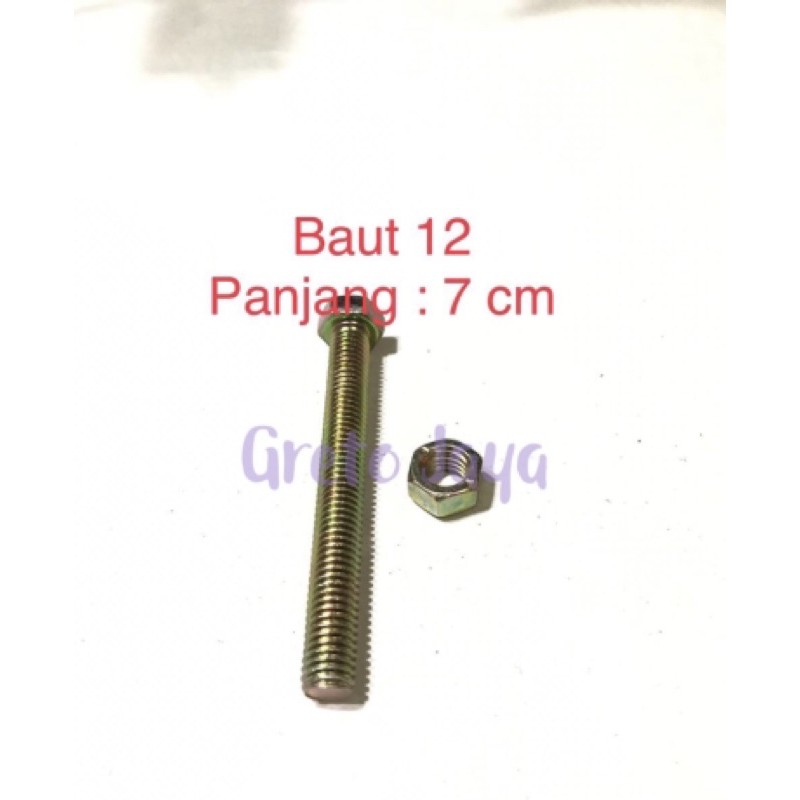 ( Baut Kuning 12 Panjang 7 cm ) Mur Plat Pelat Kaki Roda Sekrup Kursi Sofa Meja 7cm Skrup