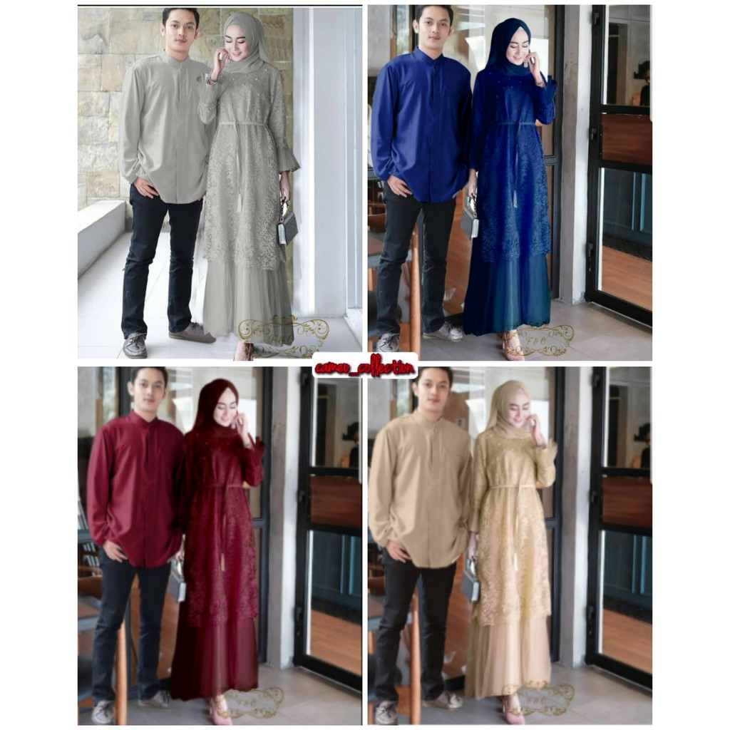 ( COD ) COUPLE FINDA 2IN1 BAJU COUPLE BRUKAT VELVET BAJU MUSLIM COUPLE BAJU PASANGAN SET PAKAIAN COUPLE BAJU KONDANGAN COUPLE TERMURAH ( CAMEO.002 )