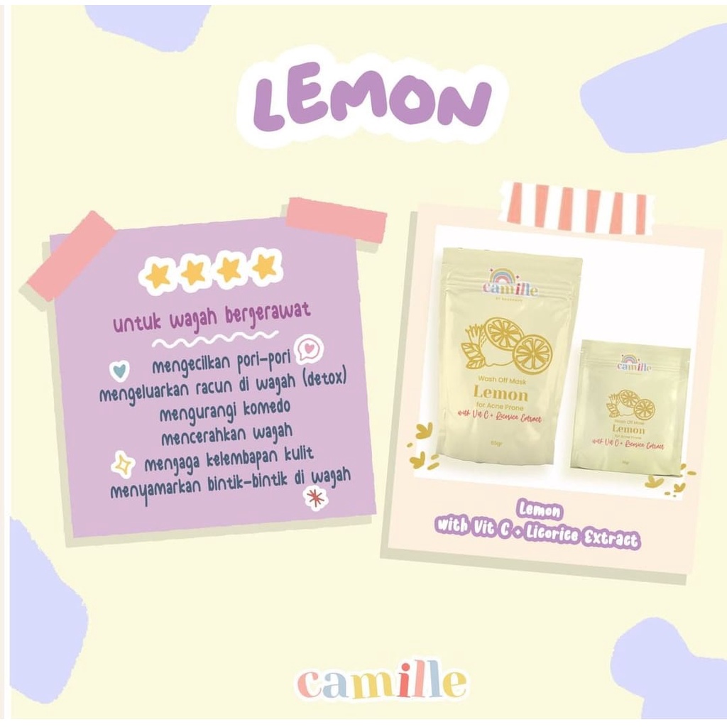 ( Full size) Masker Camille camil kemil camile beauty kopi green tea matcha milk susu strawberry kopi coffee lemon nadshavv
