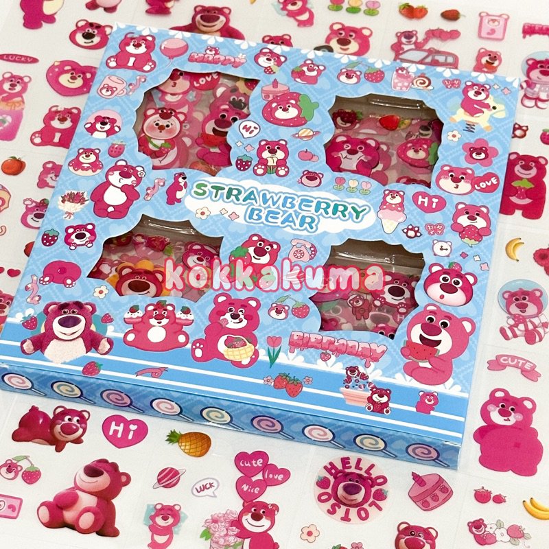 ( KKM ) LOTSO Aesthetic Sticker Box Set Stiker Journal DIY Jurnal Lucu Karakter Beruang Stroberi Strawberry Waterproof Anti Air Bahan PET 1 Box isi 100 Lembar