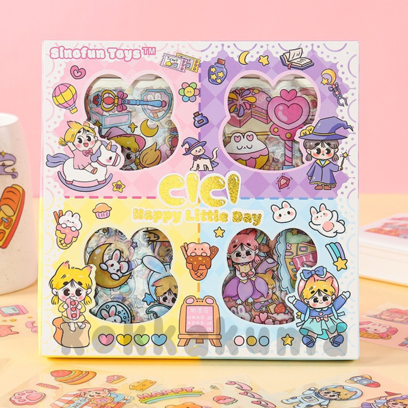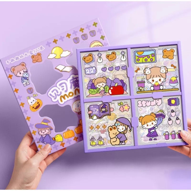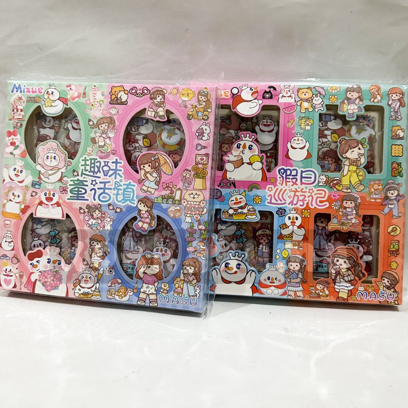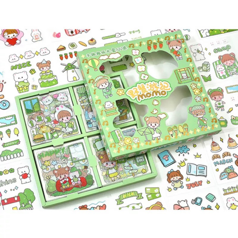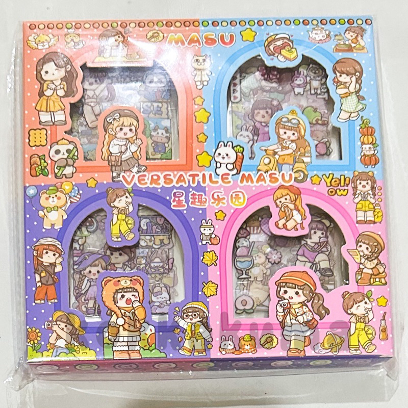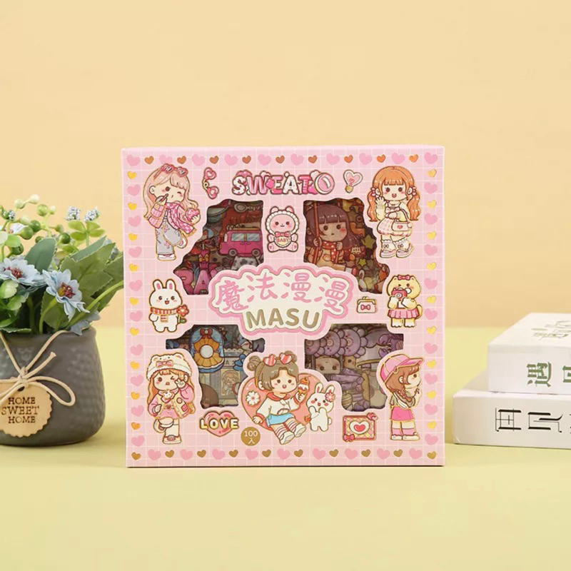 ( KKM ) MASU Sticker Box Aesthetic Karakter Cewek Korea Waterproof isi 100 Lembar per Box