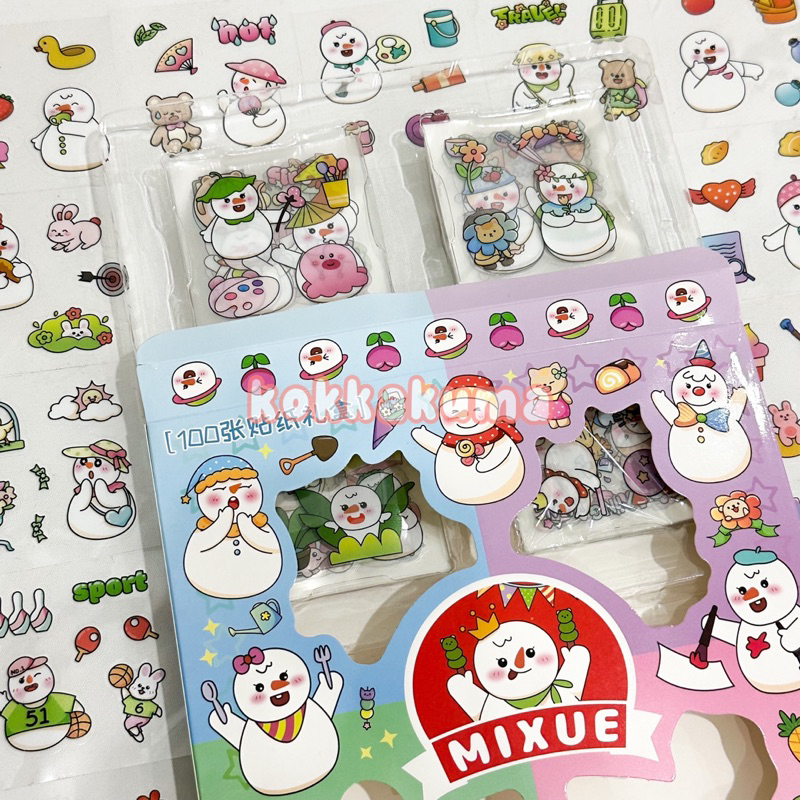 ( KKM ) MIXUE Aesthetic Sticker Box Karakter Snow King Viral Waterproof Anti Air Bahan PET Lucu Stiker Anak Motif Es Krim 1 Box isi 100 Lembar