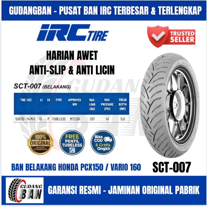[PAKETAN SEPASANG/SATUAN] IRC 100 80 14 & 120 70 14 UKURAN STANDAR ORIGINAL PCX 150 / VARIO 160 / AEROX UPSIZE SCT006 SCT007FREE PENTIL TUBELESS SNI - STANDAR PABRIK AWET & ANTI LICIN - GARANSI RESMI