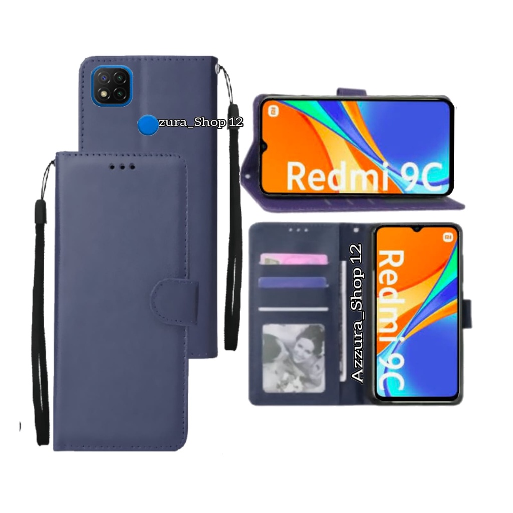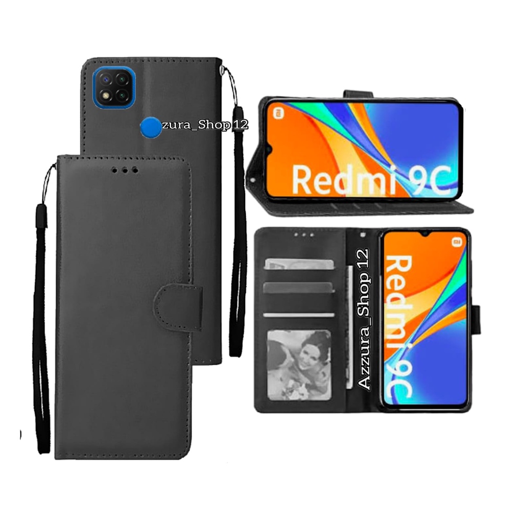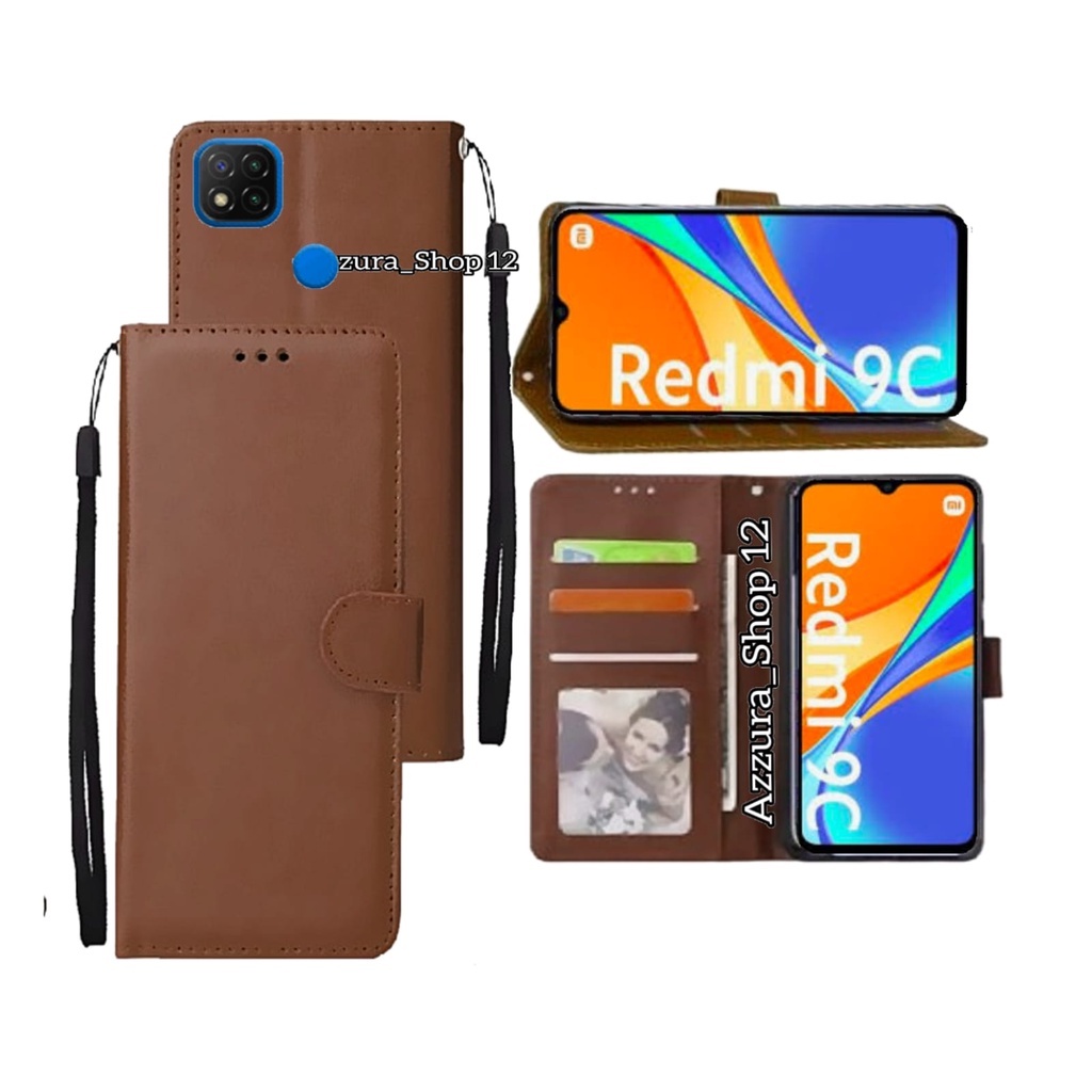 ( Xiaomi Redmi 9c ) Sarung Buku Flip Leather Case Wallet Case Flip Casing Dompet Sarung Buku Hp