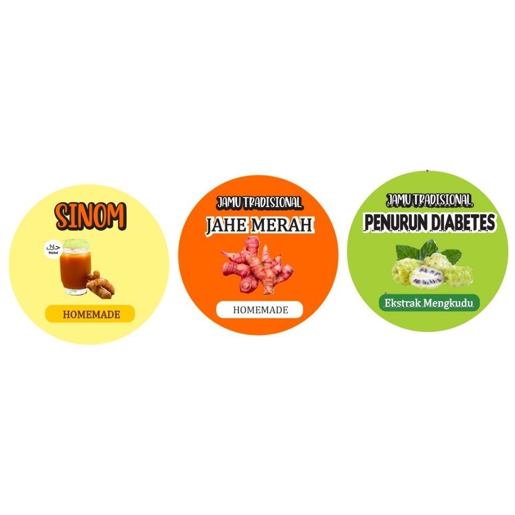 ( isi 40pcs) AENPRINT - Stiker jamu bulat minuman jamu jamu herbal sticker sari kedelai stiker sari kacang hijau sticker kunyit asem beras kencur