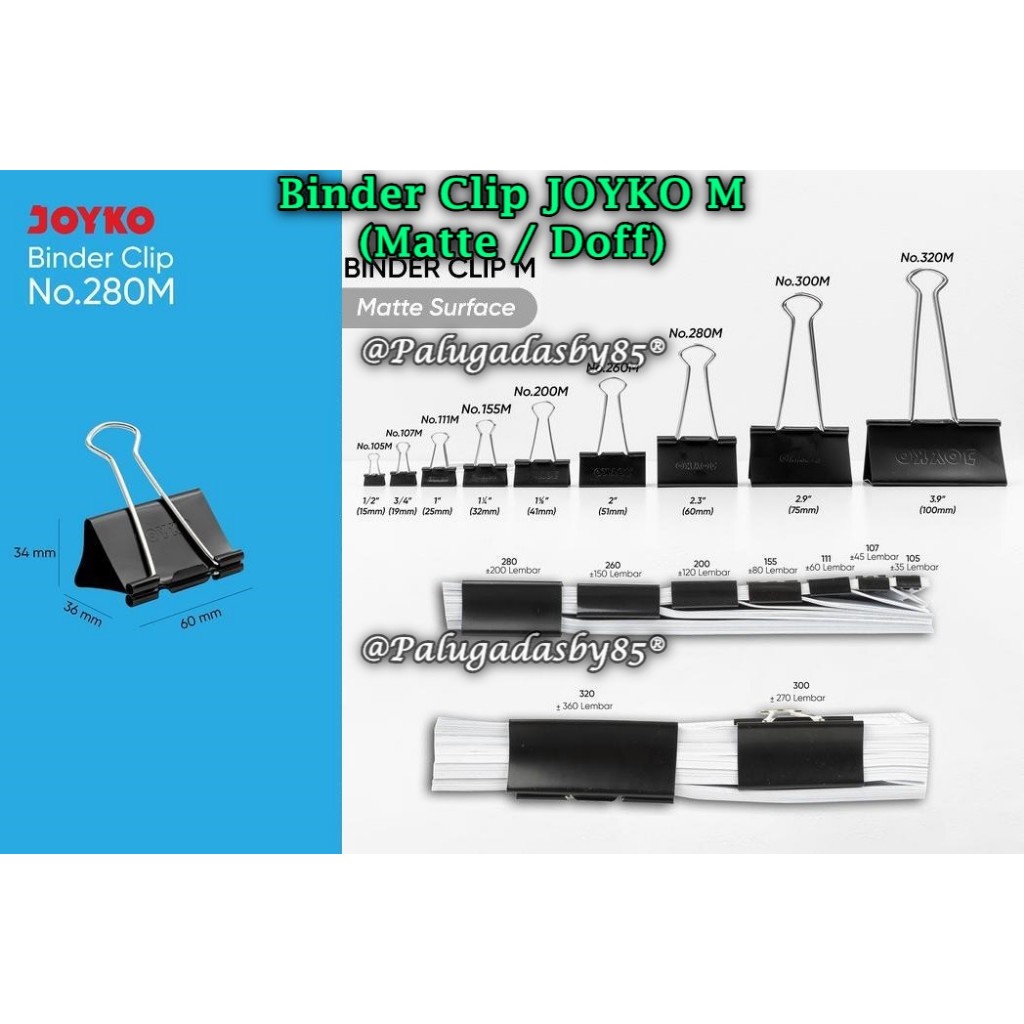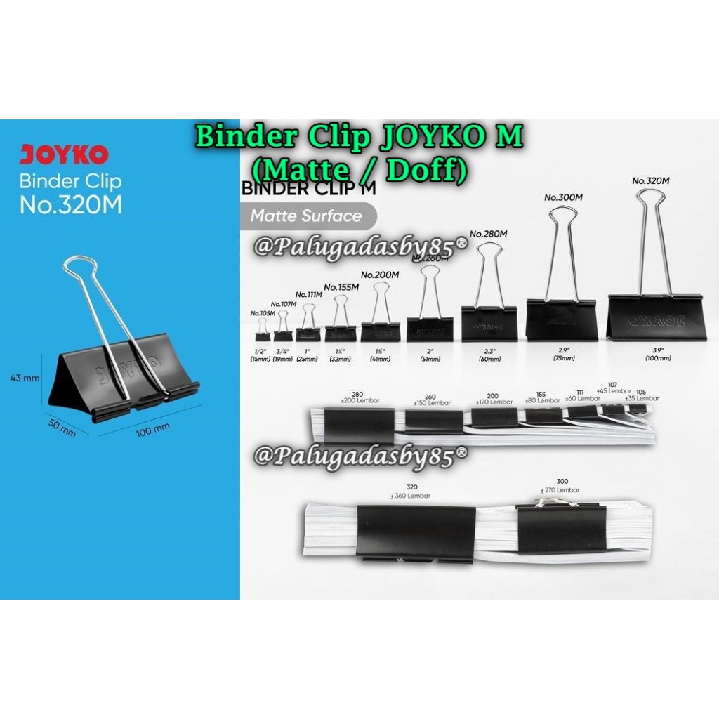 (1 Biji) GABUNGAN Binder Clip Joyko 260 280 300 320 Hitam Klip Penjepit Kertas Joyko Black (1 Biji)