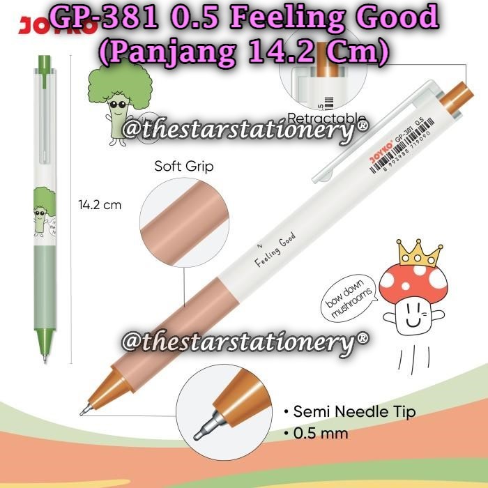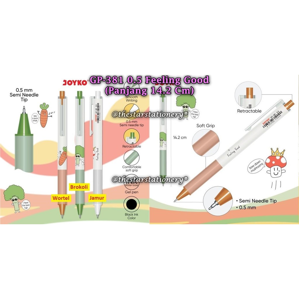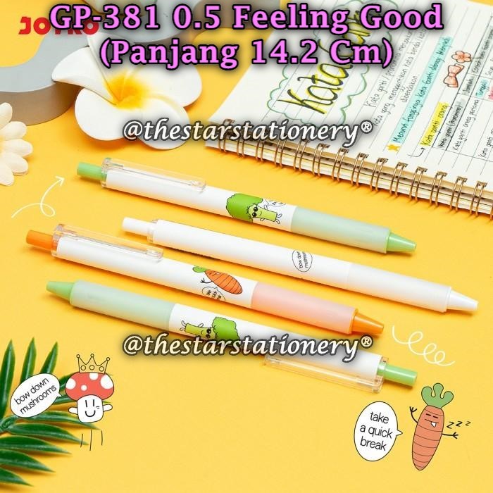 (1 Biji) Gelpen JOYKO GP-381 Feeling Good Hitam 0.5 mm / Gel Pen Pulpen Pena Joyko GP-381 (1 Biji)