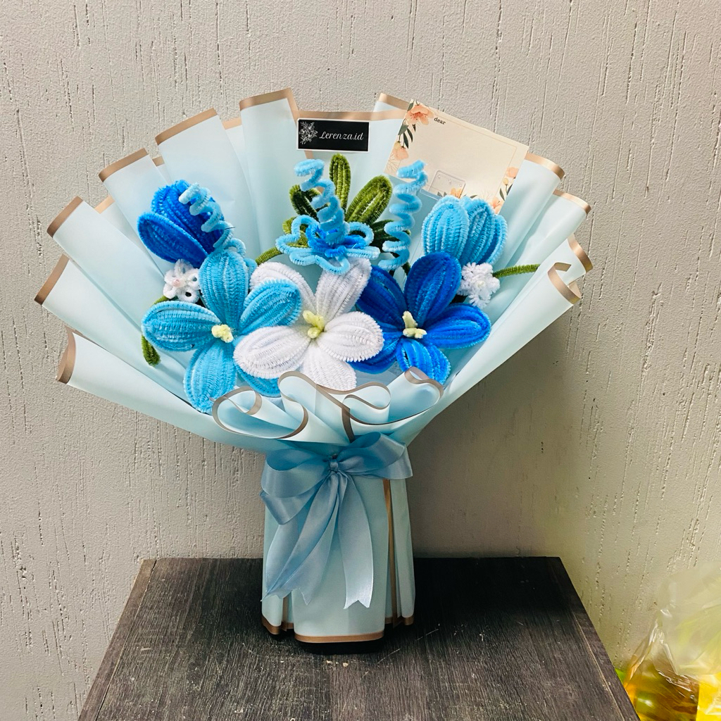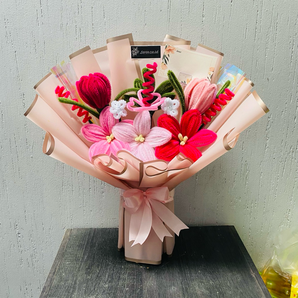 (1 HARI JADI) MEDIUM BUKET BUNGA WISUDA/BUKET BUNGA PIPE CLEANER/BUKET BUNGA KAWAT BULU