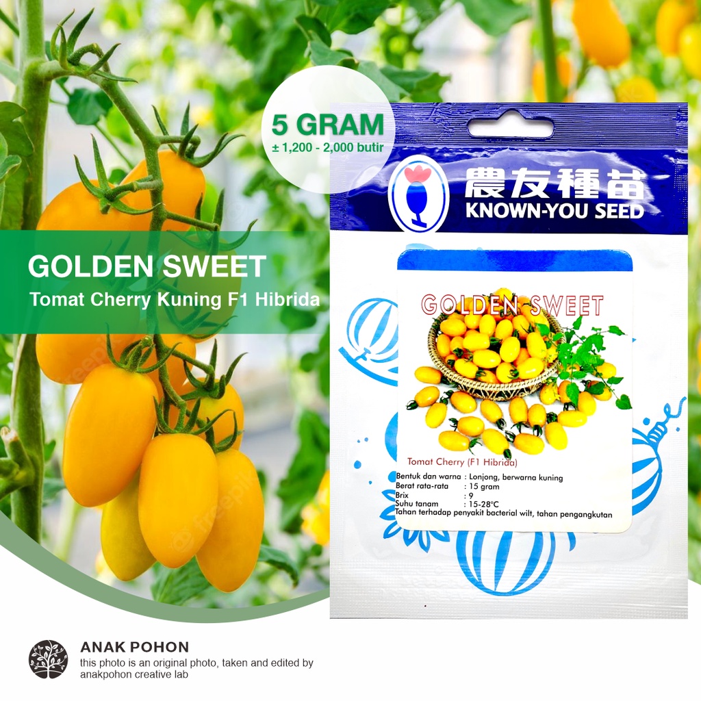 (1 PACK) Benih Tomat Ceri Kuning Mini GOLDEN SWEET Hibrida F1 Yellow Cherry Tomato Seeds - Known You Seed KYS - 5 GRAM