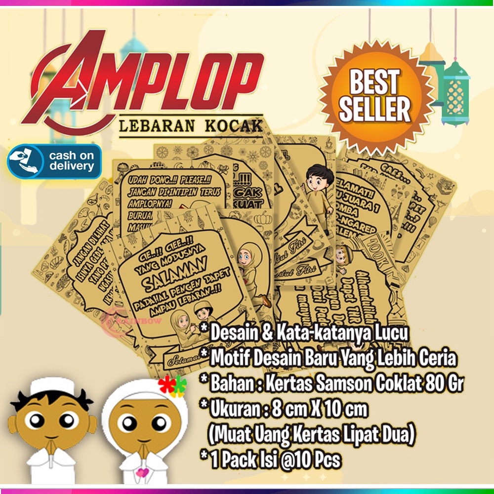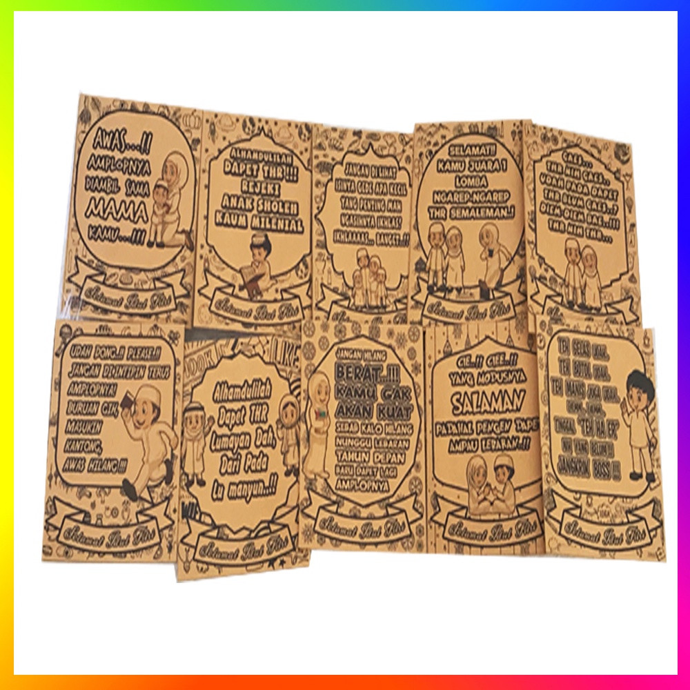 (1 PACK ISI 10 PCS ) Amplop Lebaran Kocak Lucu Motif & Kata-Kata Lucu Amplop Angpau Idul Fitri Angpao Idul Adha