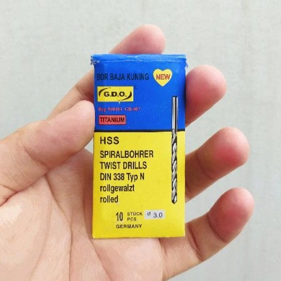 (1 PAK ISI 10 PCS) Mata Bor Besi Baja Kuning 3mm Bor Kuning 3 mm