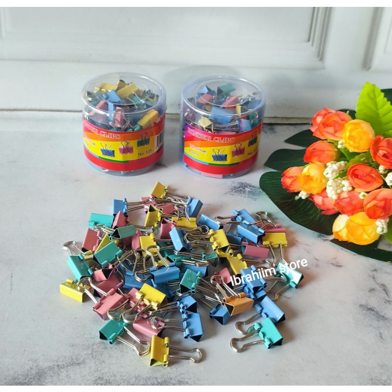 (1 PAK ISI 60 PCS) BINDER CLIP KECIL MOTIF NO. 105 & 107 15 MM MURAH / BINDER CLIP KECIL WARNA WARNI MURAH / KLIP PENJEPIT KERTAS KECIL