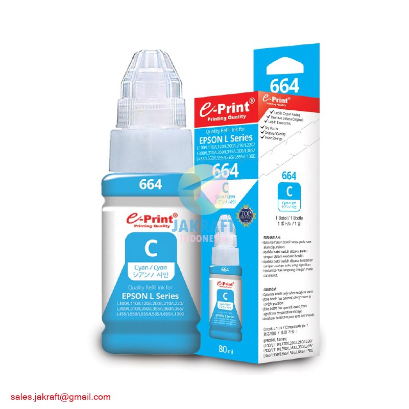 (1 Pcs) Tinta Printer Inkjet EPSON Tipe L Series dari E-PRINT 664 | EPRINT 673 Warna Lengkap 80ml