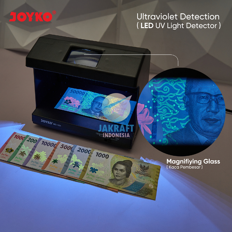(1 Unit) UV Ultraviolet & Daylight LED Money Detector JOYKO MD-101 Alat Periksa Cek Tes Deteksi Uang Sertifikat Asli / Palsu