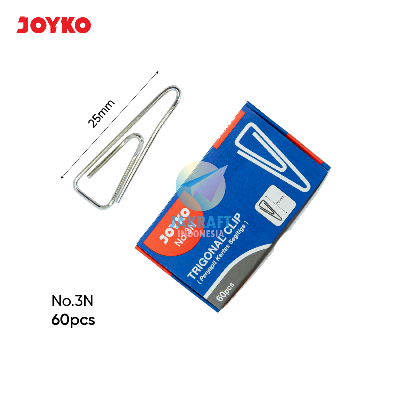 (10 Box Kecil) GROSIR Trigonal Paper Clips Clip JOYKO No.3 / 3N Ukuran Sedang 25 mm Murah Berkualitas isi 60 Pcs Klip Kertas Nickel Silver | PACK