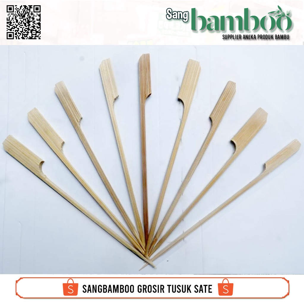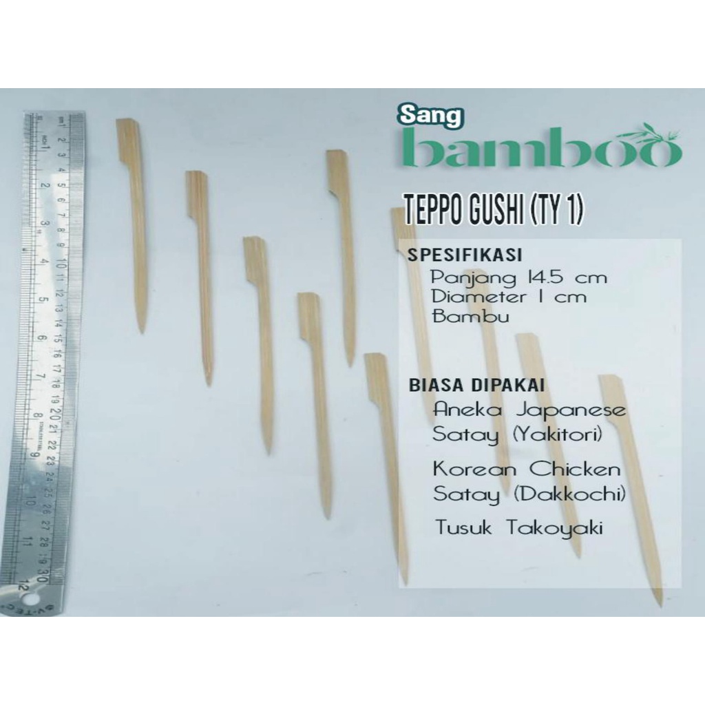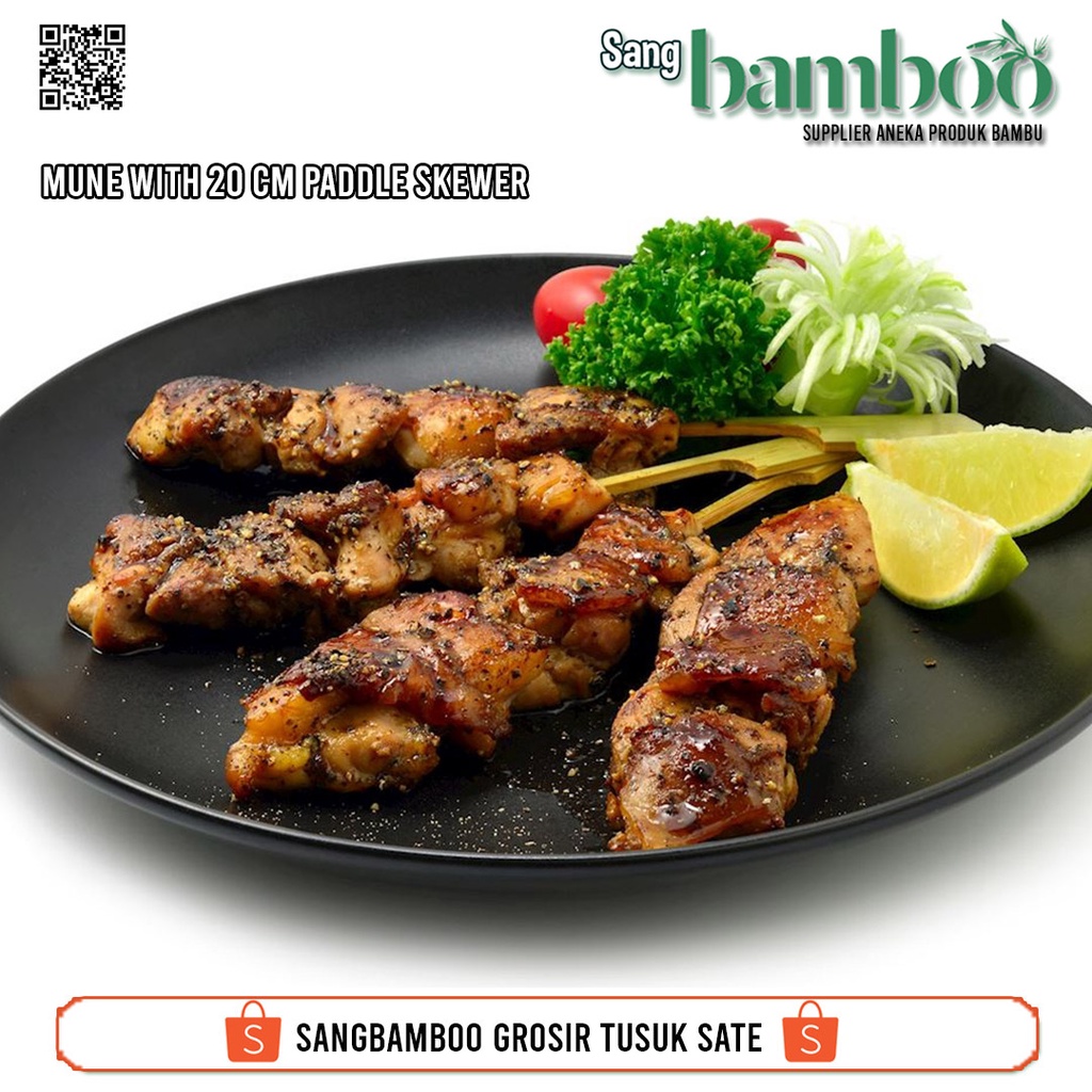 (100 pcs) Tusuk sate ayam jepang atau tusuk kushiyaki atau Tusuk yakitori atau Tusuk dayung sate kambing gepeng pipih untuk sate domba sapi dari sangbamboo