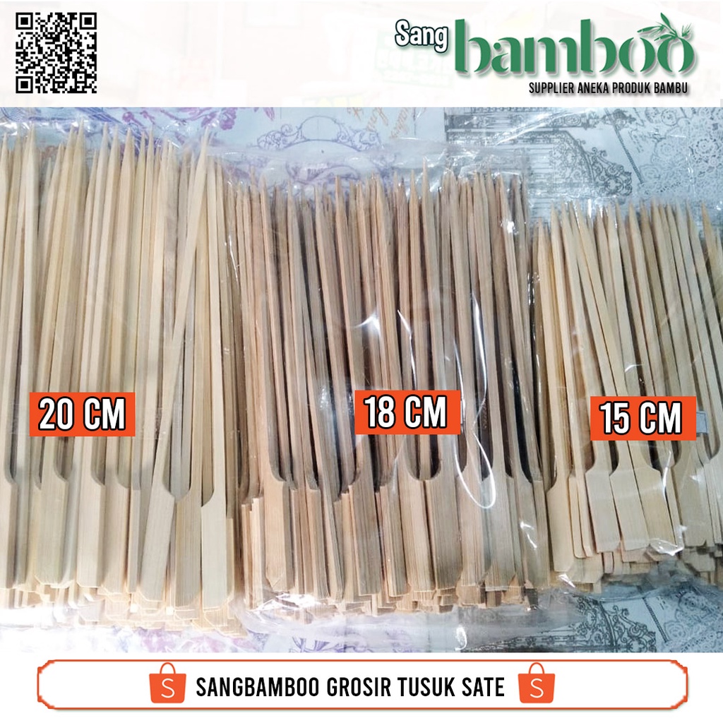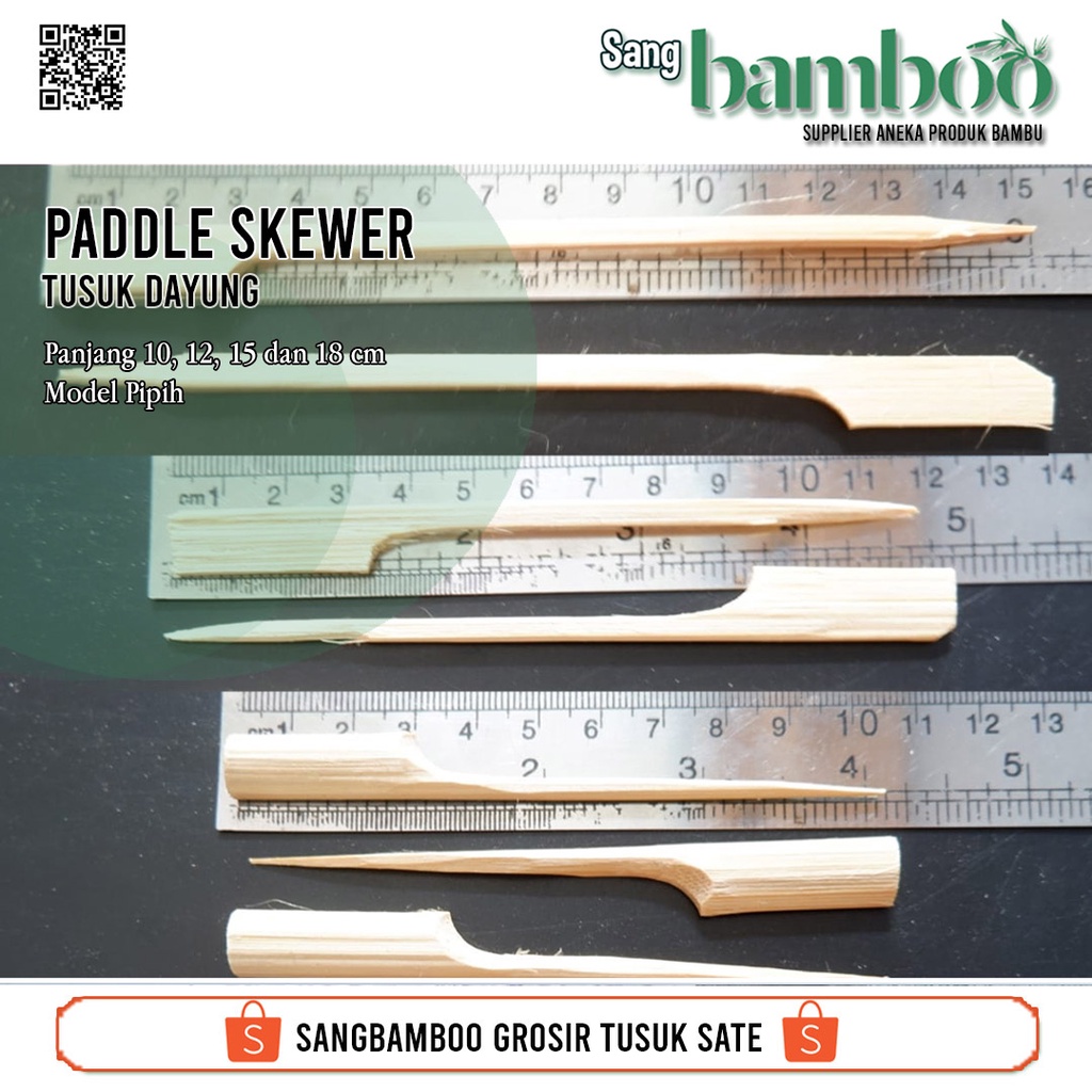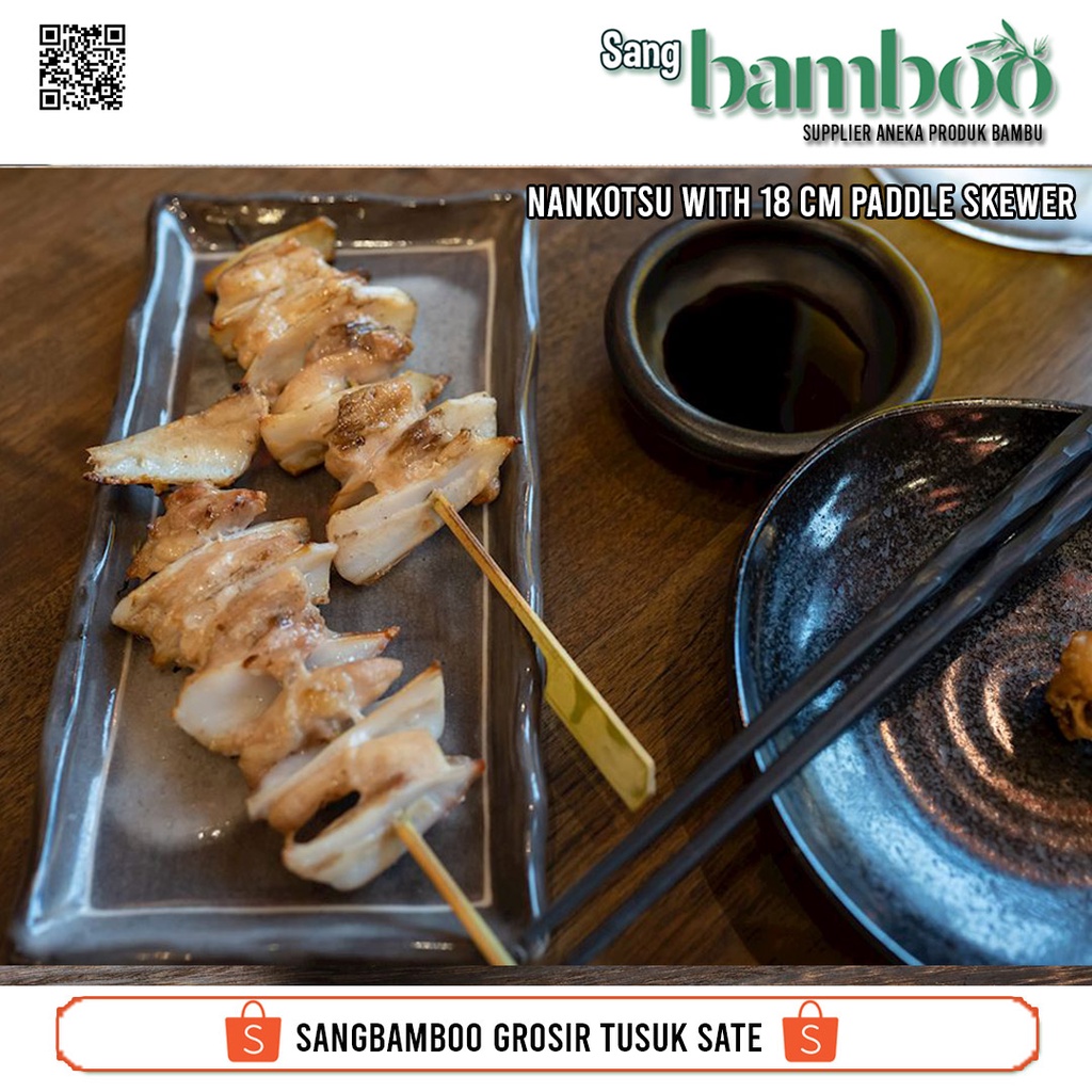 (100 pcs) Tusuk sate ayam jepang atau tusuk kushiyaki atau Tusuk yakitori atau Tusuk dayung sate kambing gepeng pipih untuk sate domba sapi dari sangbamboo