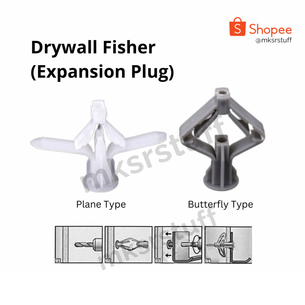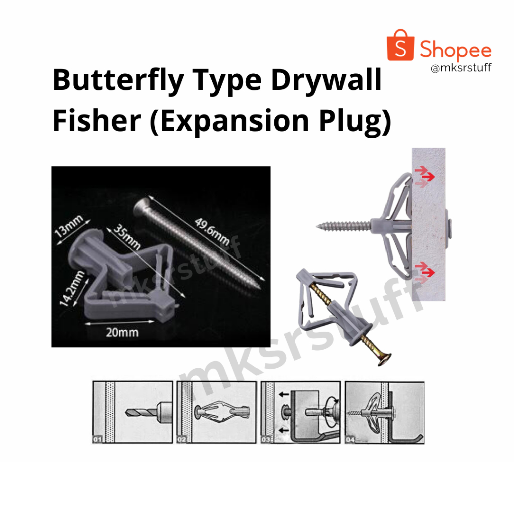 (100pcs) - Gypsum Screws / Pengencang Skrup Gypsum / Expansion Bolt / Nylon Toggle Gypsum Drywall Fisher (Expansion Plug) (Butterfly & Plane Type)