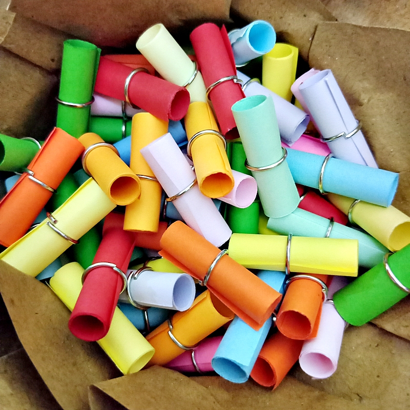 (100pcs) Kertas Gulung Mini Ring 7mm / Vitamin Cinta / Surat Cinta / Hadiah / Wishes / Kertas Wish / Kertas Motivasi / Motivation Pills / Kertas Doorprize / Kertas Kocokan Arisan / Kertas Undian