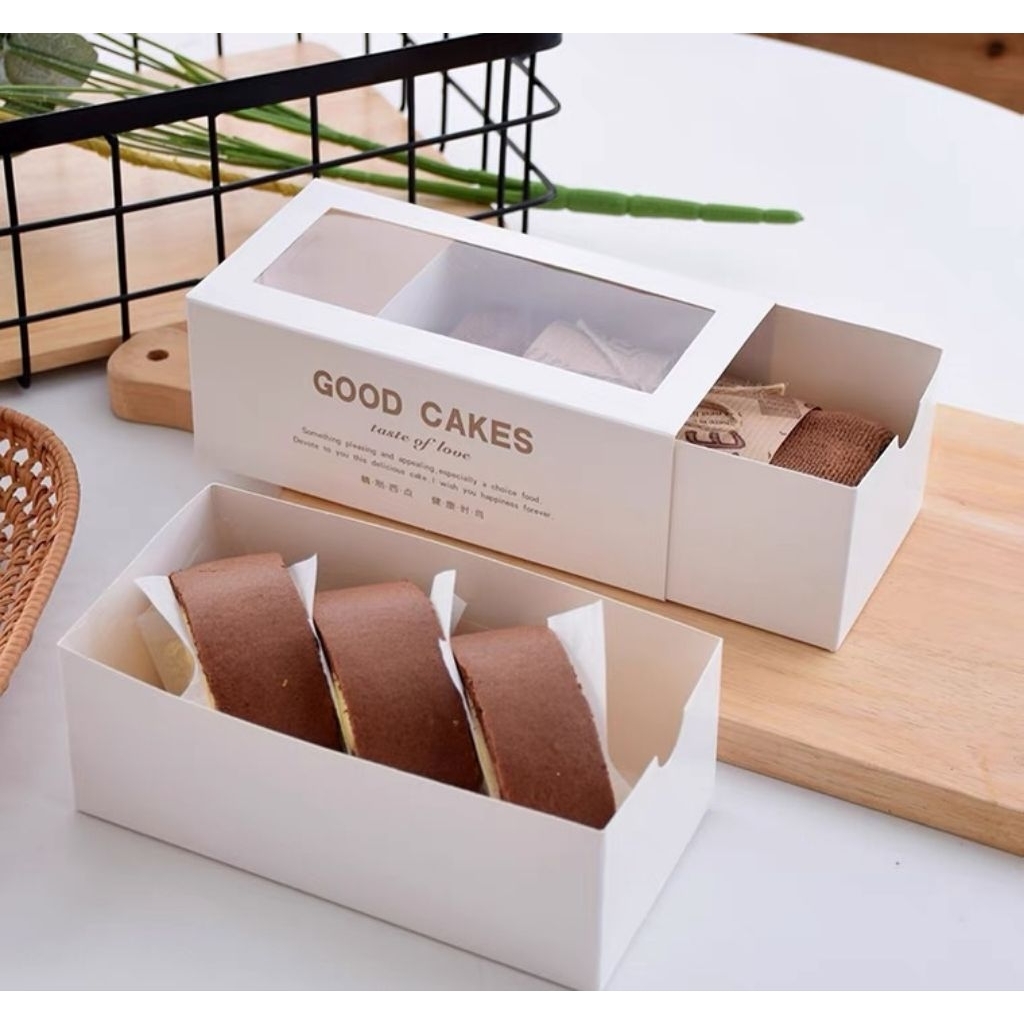 (10pcs) box donut panjang kue kotak dus kue roll cake donut roti box bolu gulung