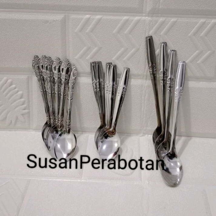 (12 Pcs)Sendok Teh Wayang/Sendok Es Panjang/Sendok Teh Pendek/Sendok Kopi Stainless