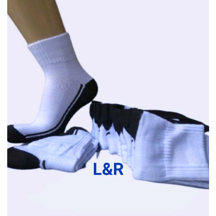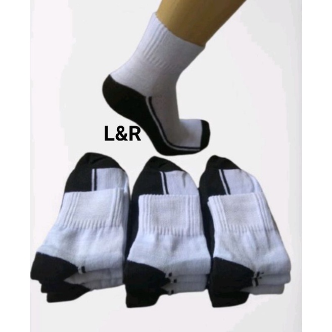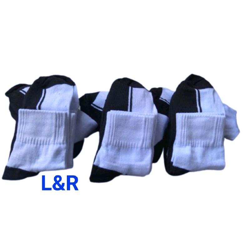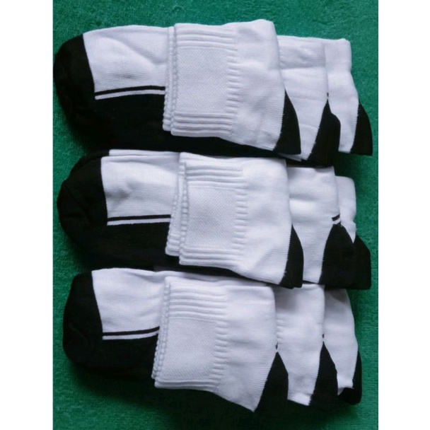 (12PASANG)KAOS KAKI PENDEK PUTIH TELAPAK HITAM/KAOS KAKI SEKOLAH/KAOS KAKI SPORT PENDEK