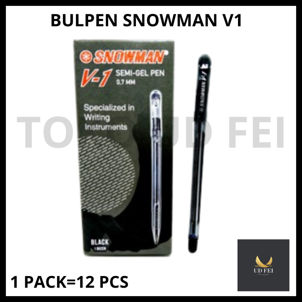 (1 PACK=12 PCS) Bulpen Snowman V1/ Bulpen Snowman/ Pulpen Snowman V1 Semi Gel Pen Hitam 0.7mm