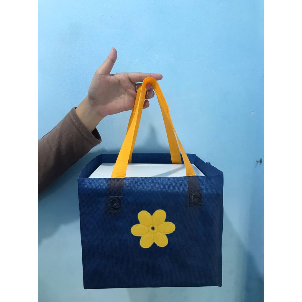 (12pcs / 1Lusin) Tas bunga box 22x22 / 20x20 cm Kain Kantong dus Nasi Kotak Hajatan souvenir besek berkat hampers pernikahan pengajian syukuran lahiran sunatan khitanan