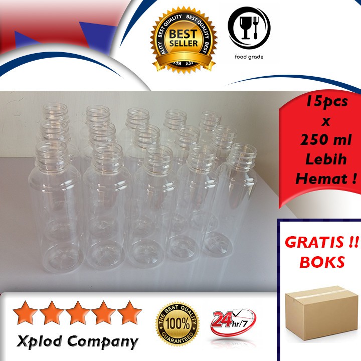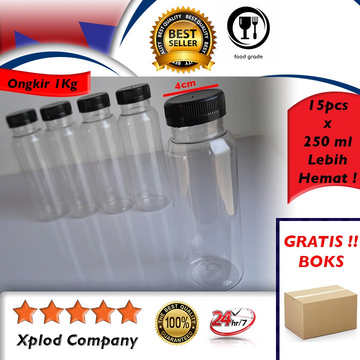 (15 Pcs) Hemat! Botol Kemasan Minuman Botol Unik Plastik Polos Untuk Minuman dan Cairan 250ml