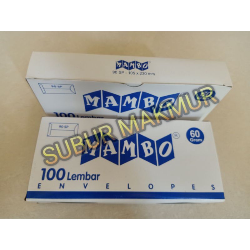 (1Kotak) AMPLOP PUTIH UKURAN KABINET PANJANG TANPA PEREKAT BUKA SAMPING merk MAMBO 90SP - AMPLOP MAMBO 90SP PUTIH ukuran 105mm x 230 mm 60 gram