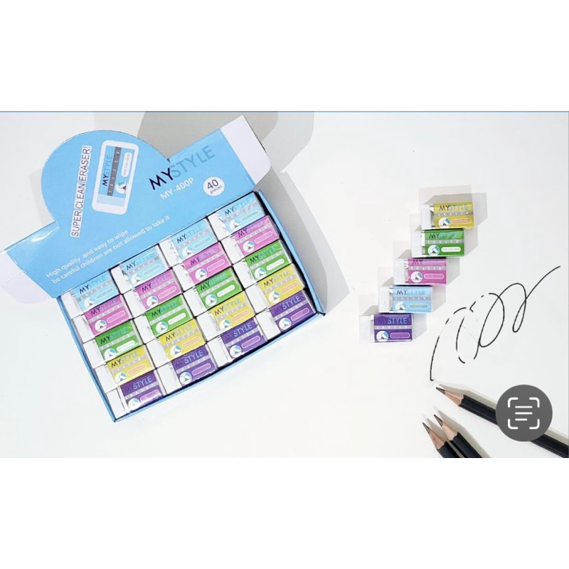 (1box isi 40pcs) Hapusan /Penghapus / Setip/ eraser B40 (HITAM + PUTIH)