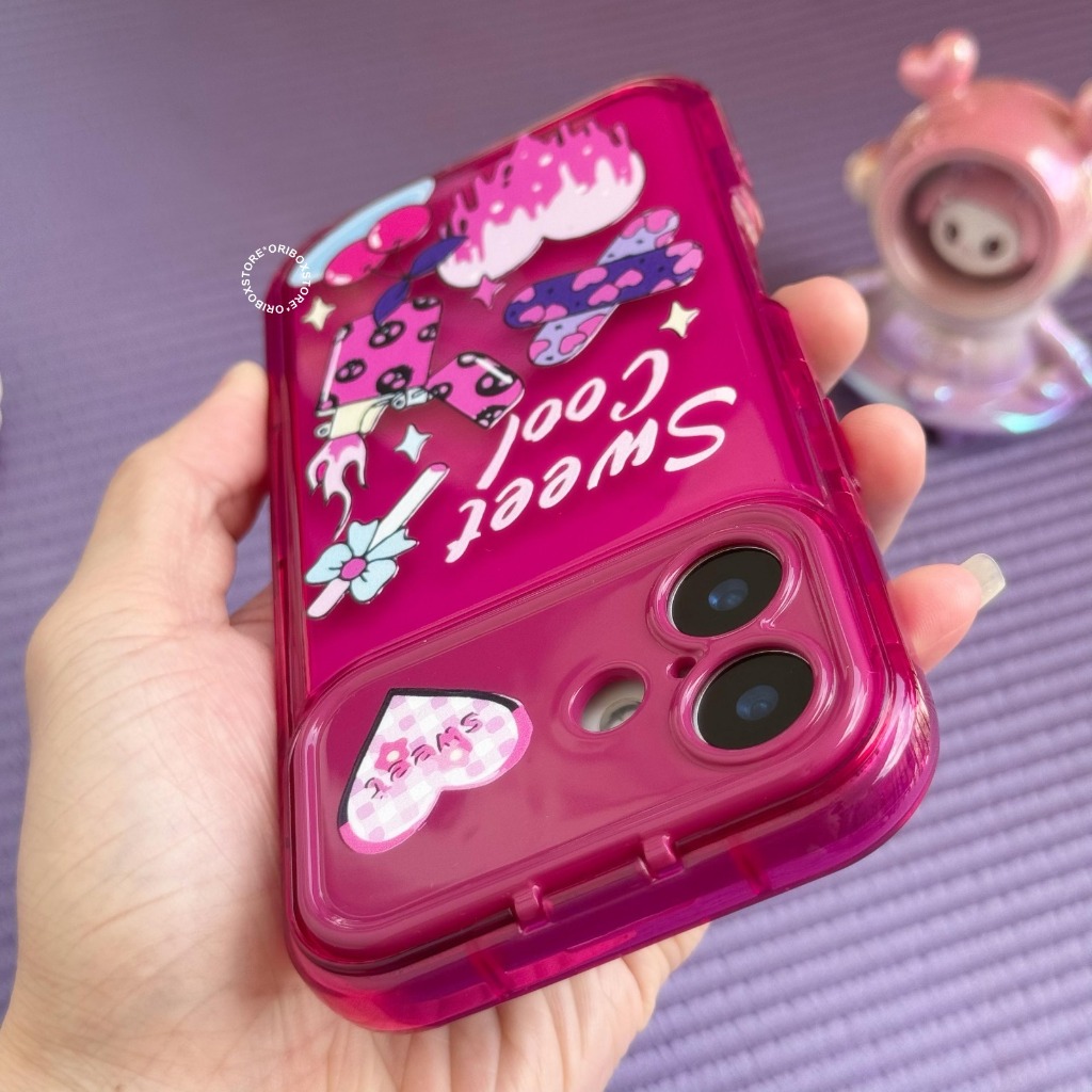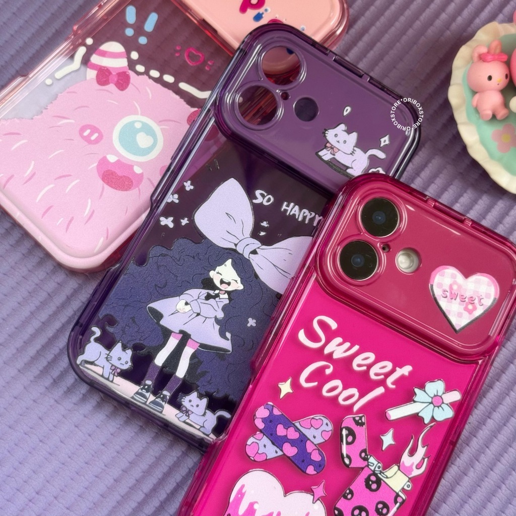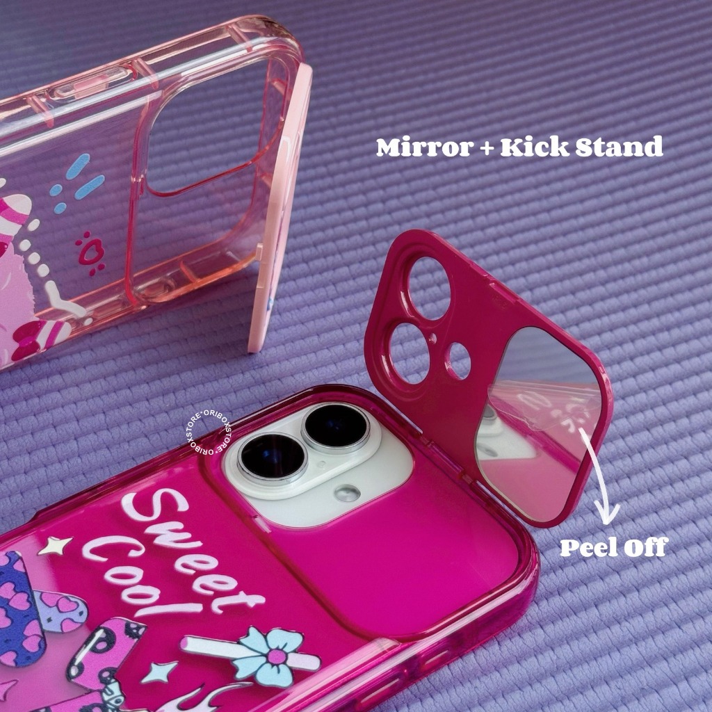 (2) Premium Case Dino X Girls - Sweet Oval Flip Mirror Shockproof - Softcase/Casing Hp Compatible For Iphone 15 16 16plus 17 17air Plus Pro Promax With Bumper Metalic Case Full Cover Pelindung Handphone RCI559